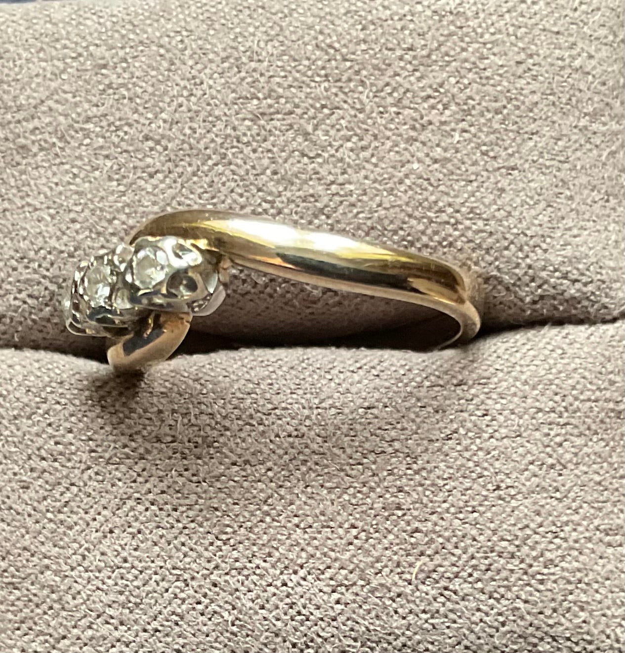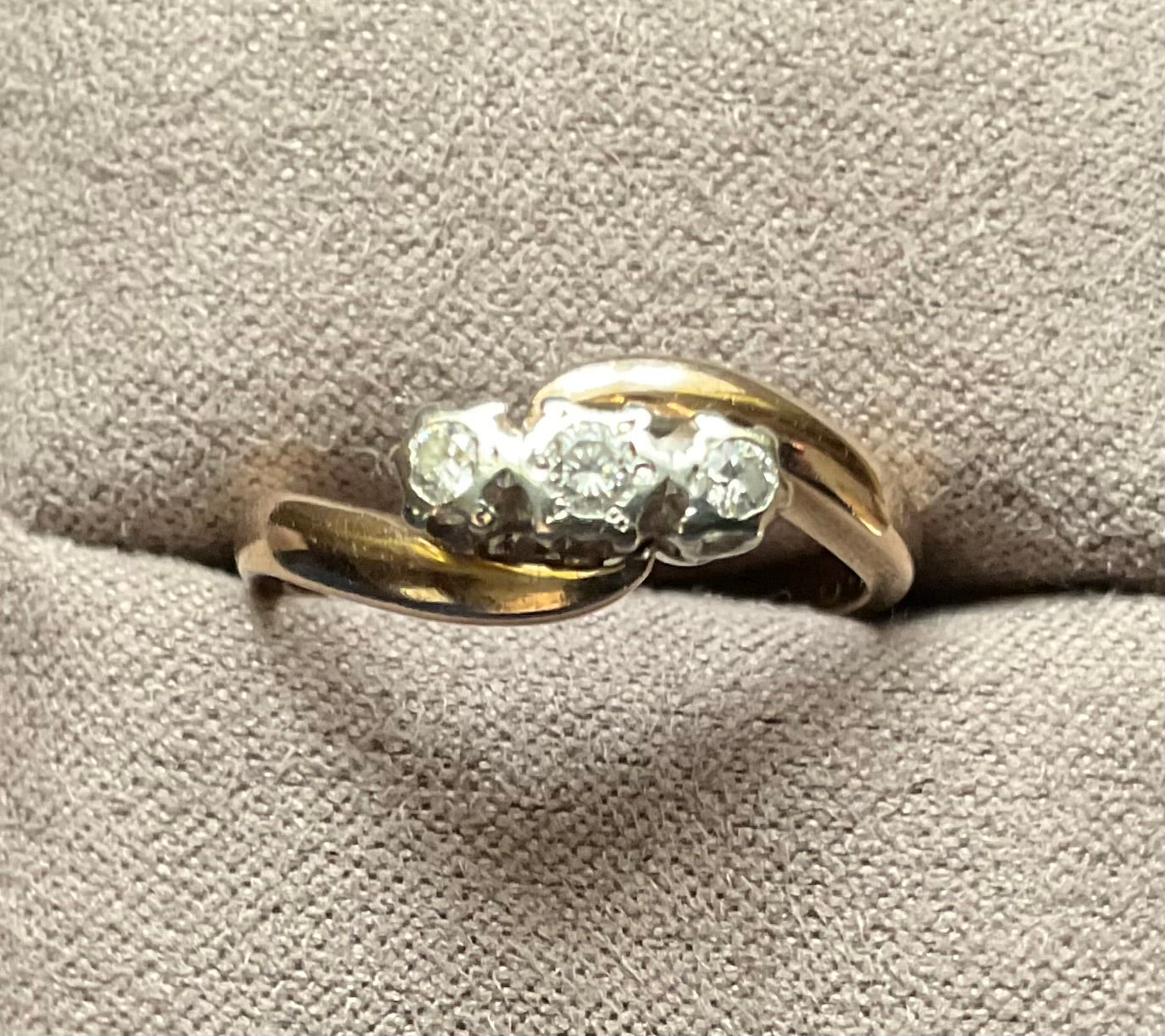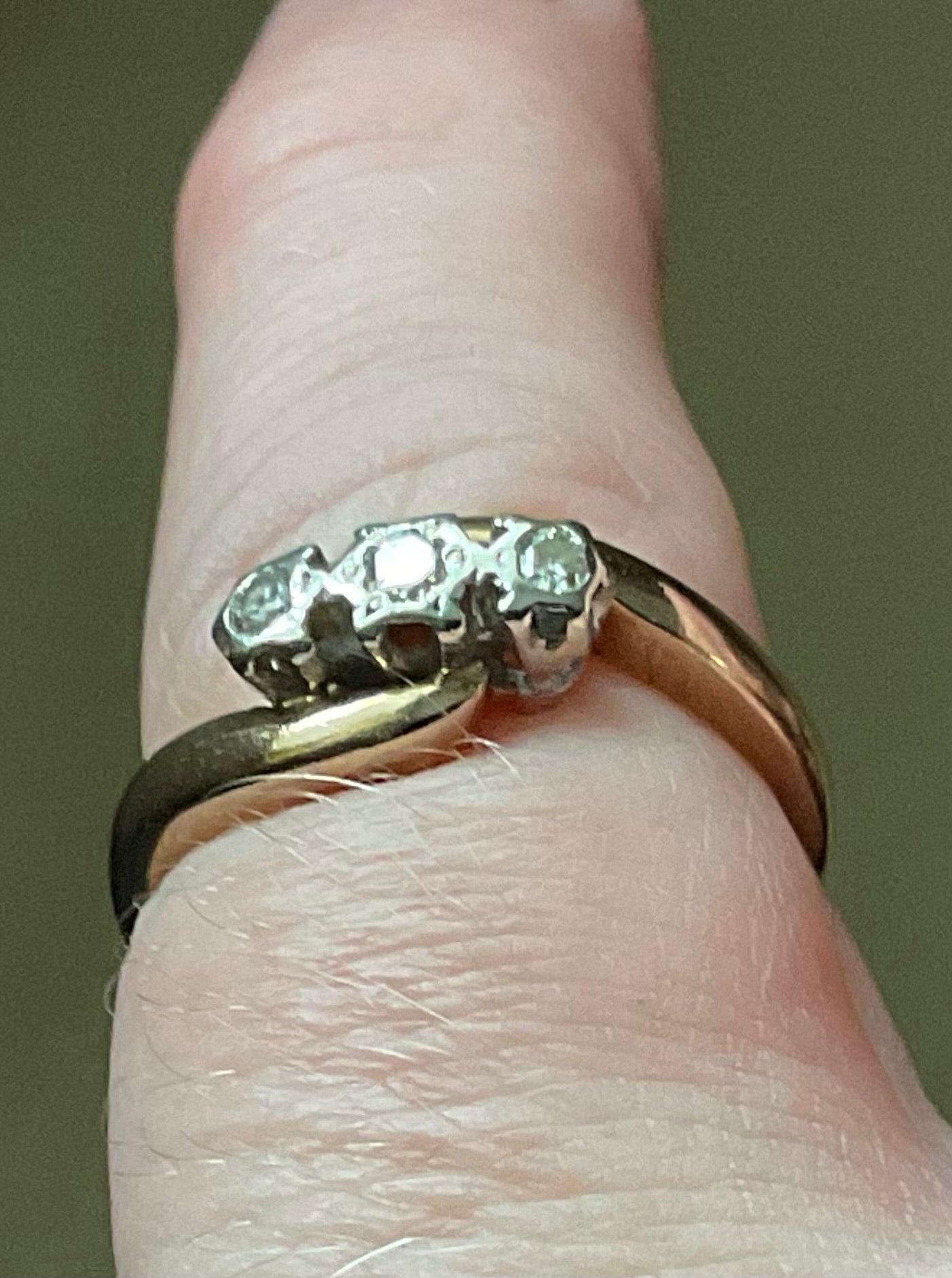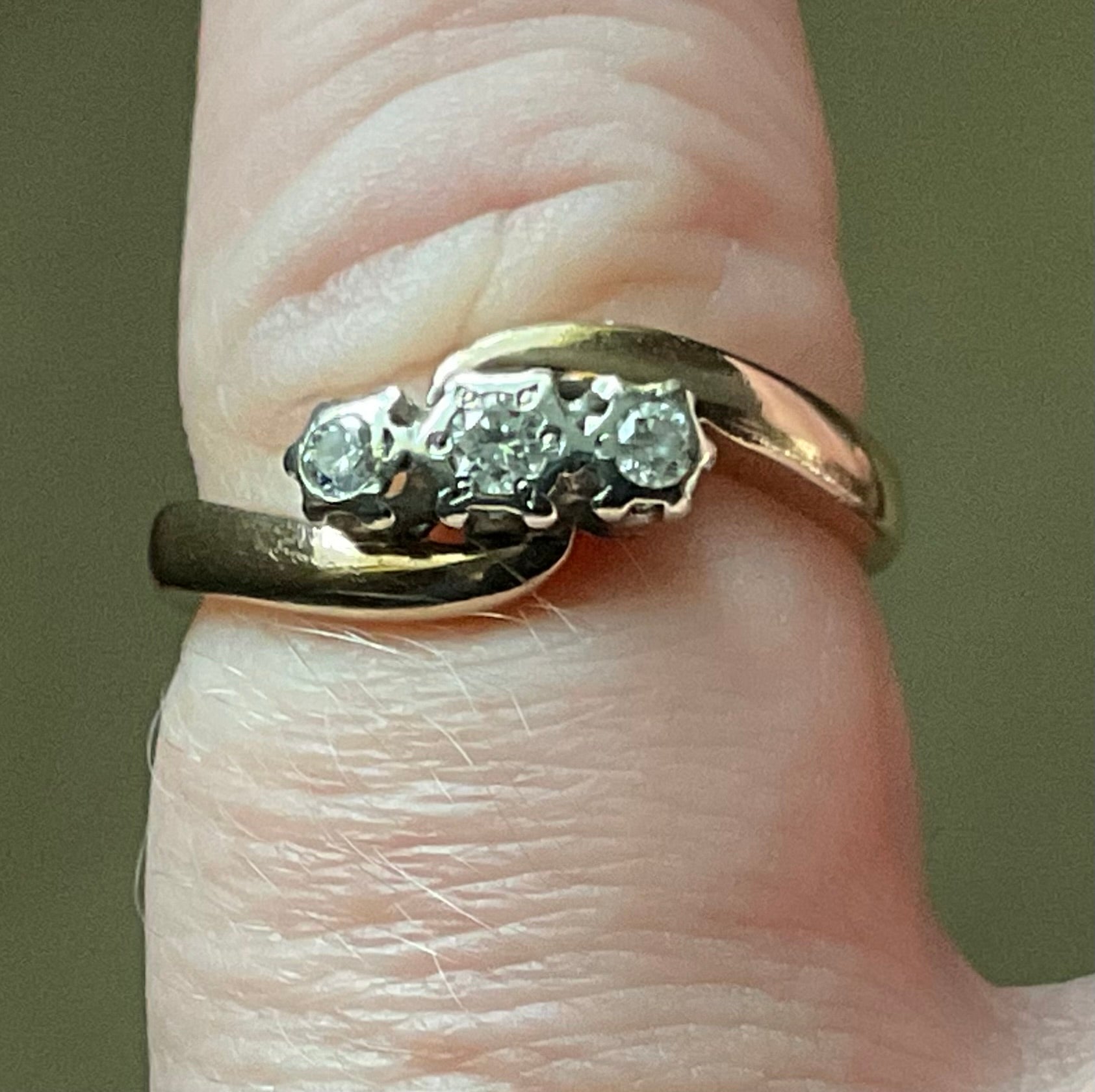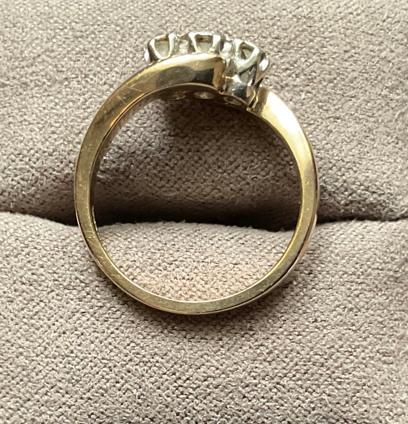 9ct vintage diamond illusion set trilogy bypass ring size L yellow gold London hallmarked