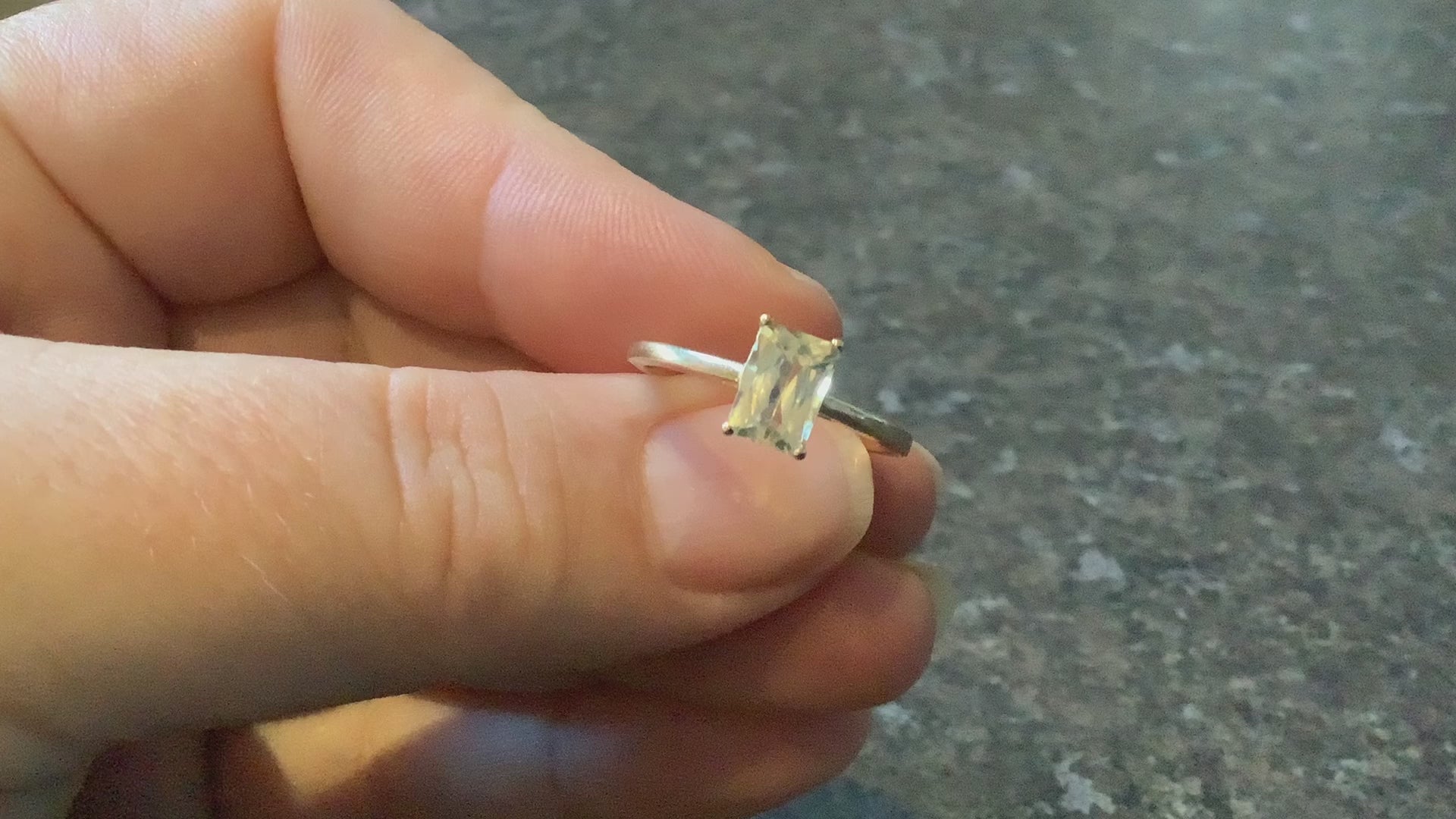 10K pale yellow solitaire rectangle cut gemstone ring size N1/2 yellow gold TGGC