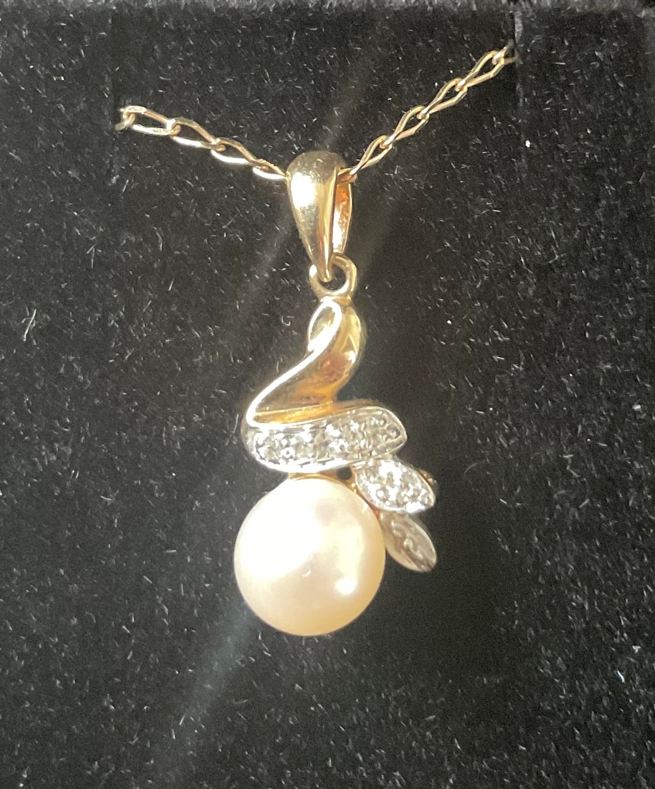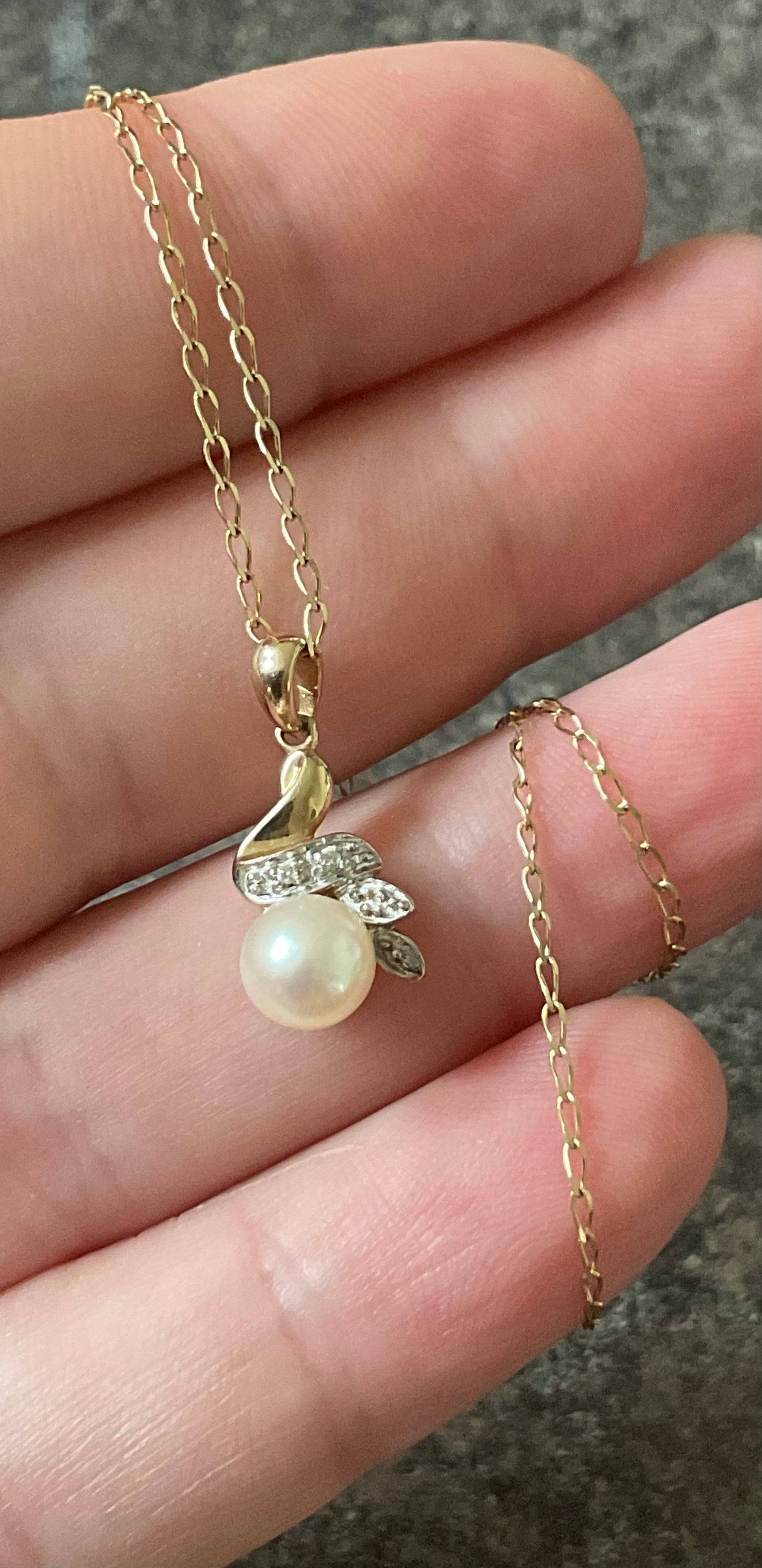 9ct Pearl and Diamond pendant necklace on 18" fine chain