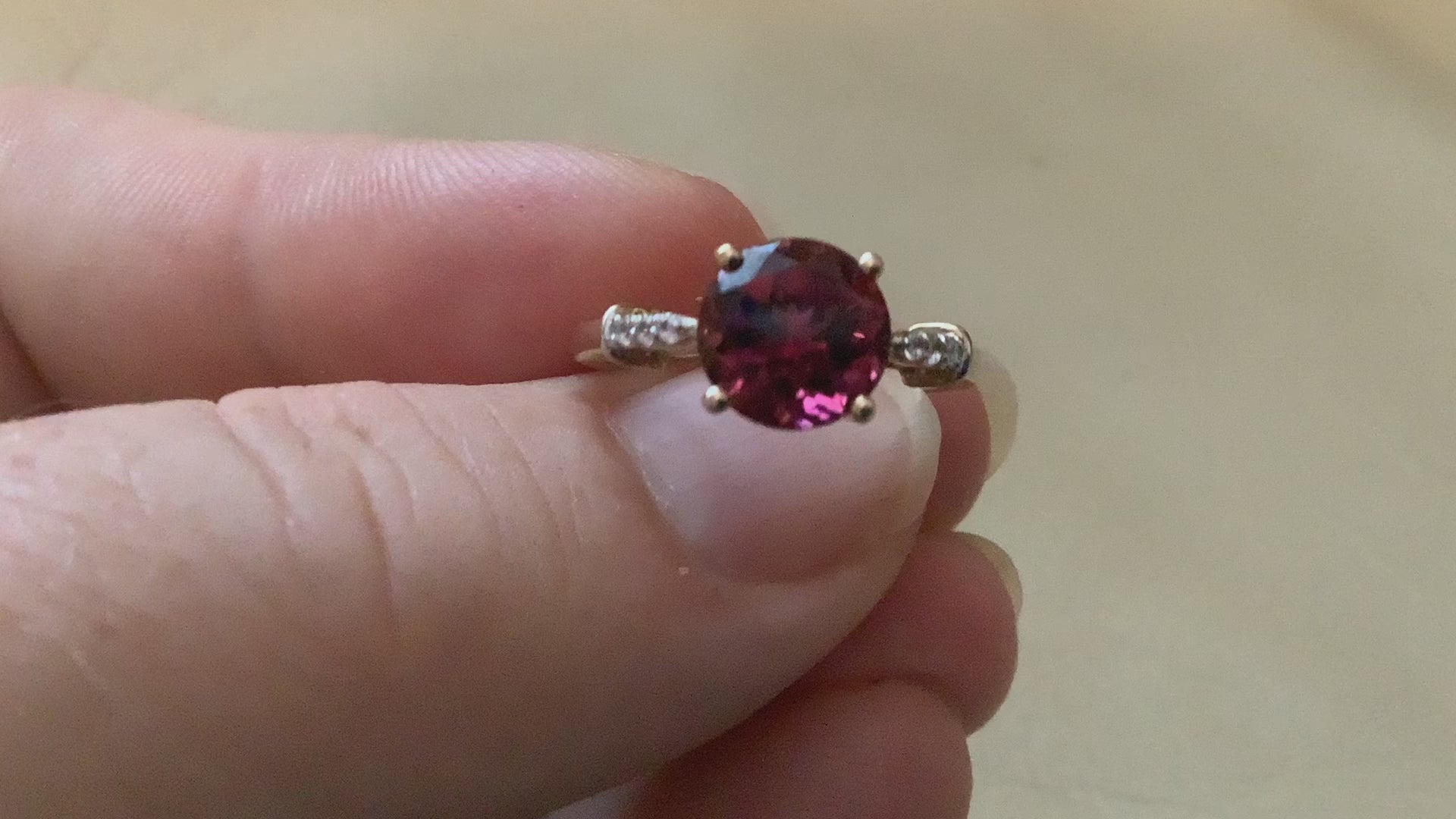 Wow!! This ring is stunning, the photos do not do the colours in this amazing stone justice! It measures 7.5mm across and sparkles away with flashes of reds and pinks depending on the light hitting it. The shoulders on either side are set with sparkling white zircon stones. It is stamped for Gemporia and has the 9K 375 stamps and a full hallmark. It’s in great preloved condition with small signs of wear on close inspection. It’s gorgeous and will come in a new black leatherette box.