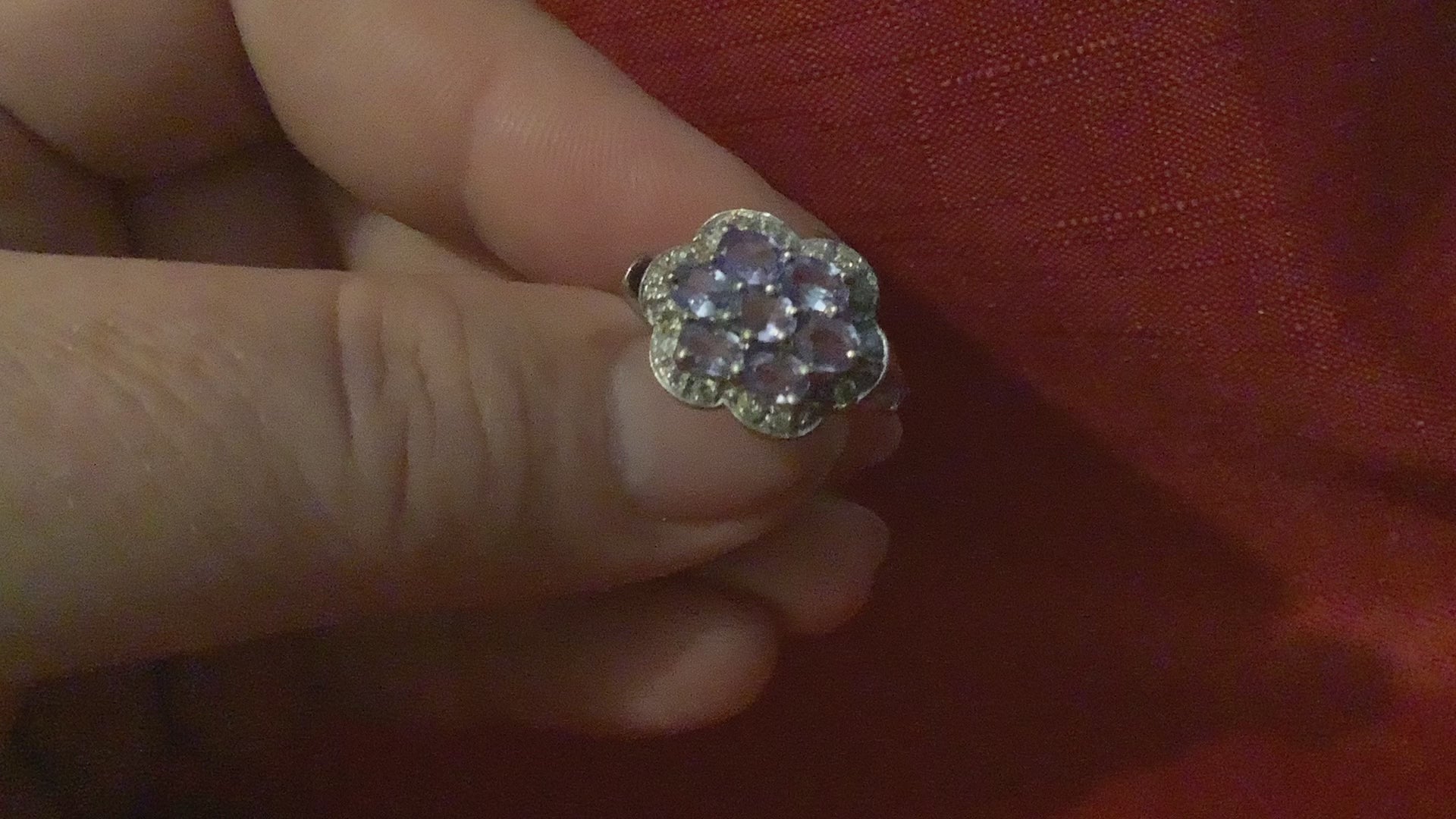 9ct Tanzanite and Diamond white gold halo cluster ring size M1/2