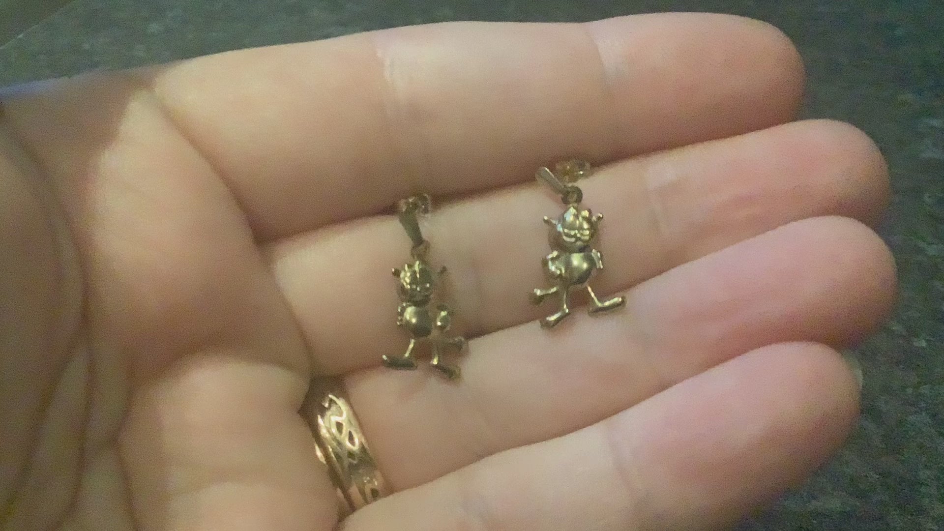 9ct Vintage Garfield cat drop earrings yellow gold 1976 UFS cartoon character