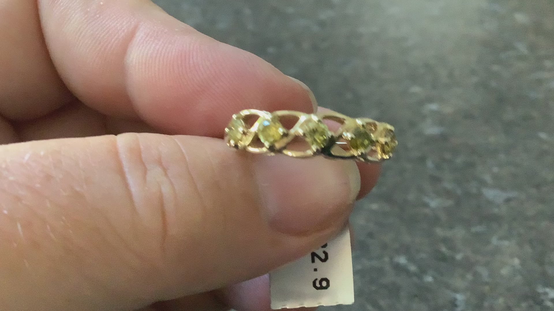 This beautiful ring has never been worn but has been stored for a while, it still has its tag on. It comes in its Gemporia boxes with its certificate of authenticity containing information about ring and the diamonds. It is a limited edition of 1 of 25 pieces. It’s hallmarked for 9ct gold but is also stamped 417 10K, the ring measures 6mm across and contains 5 stunning yellow diamonds. Please read the authenticity card for more details.