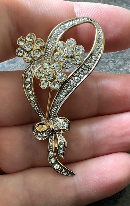 Adrian Buckley Pave Collection gold tone crystal flower on bow brooch