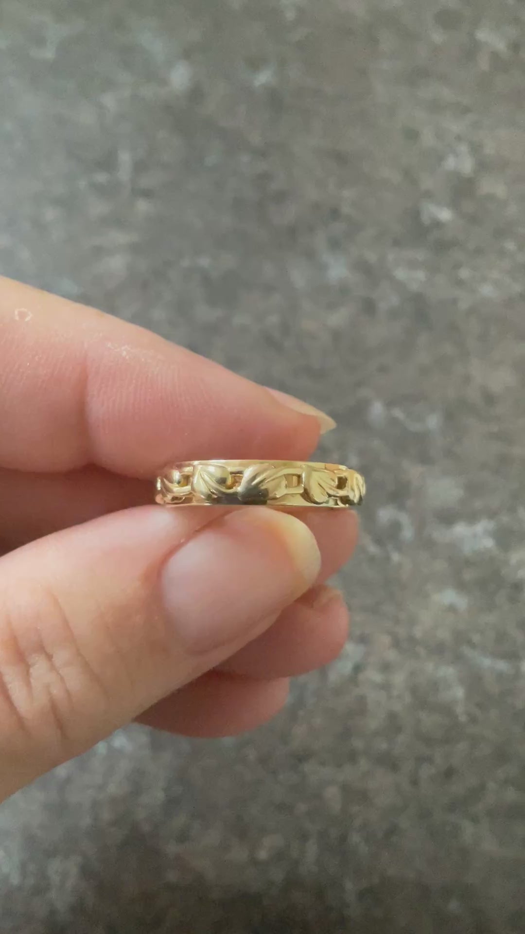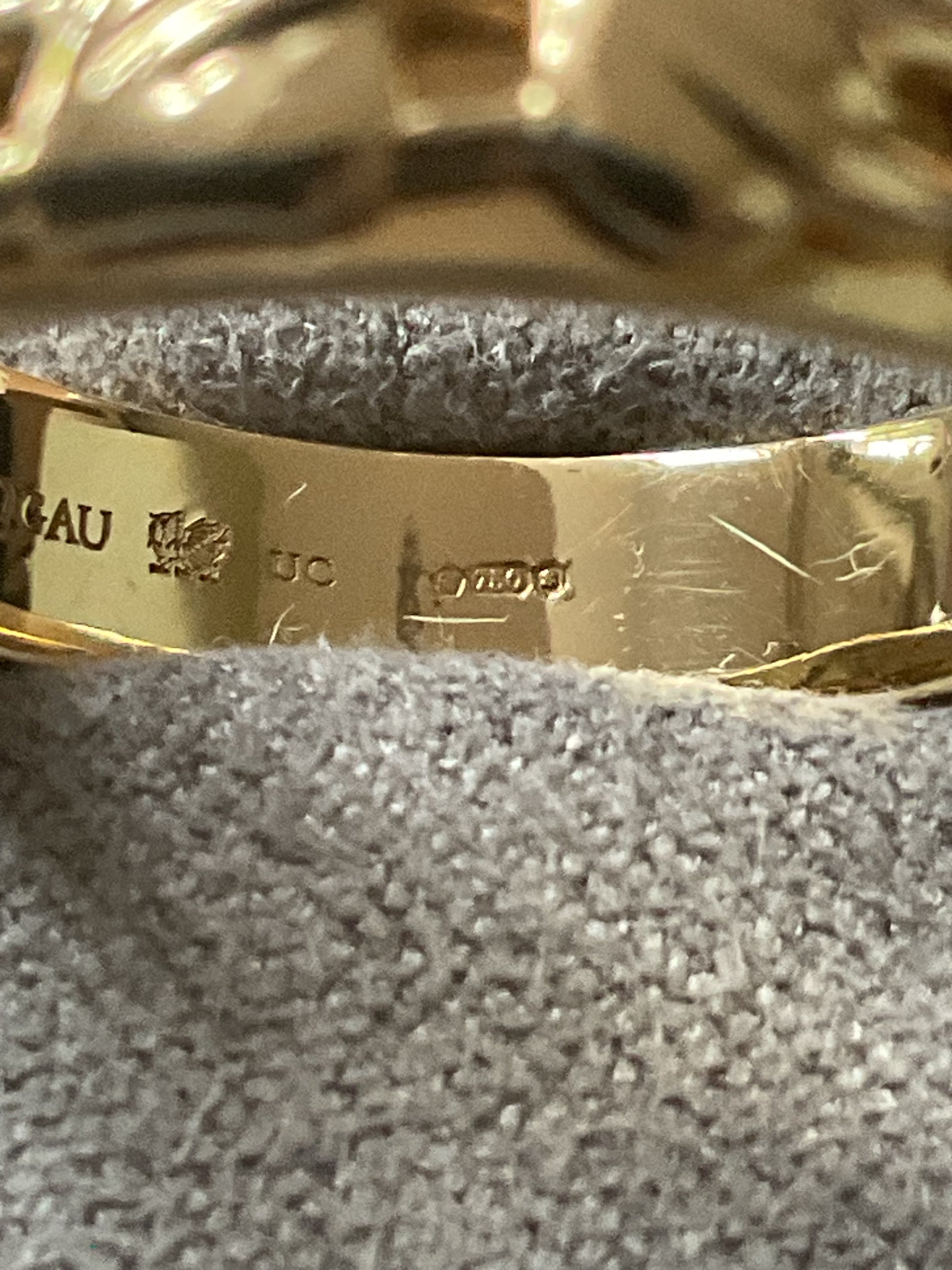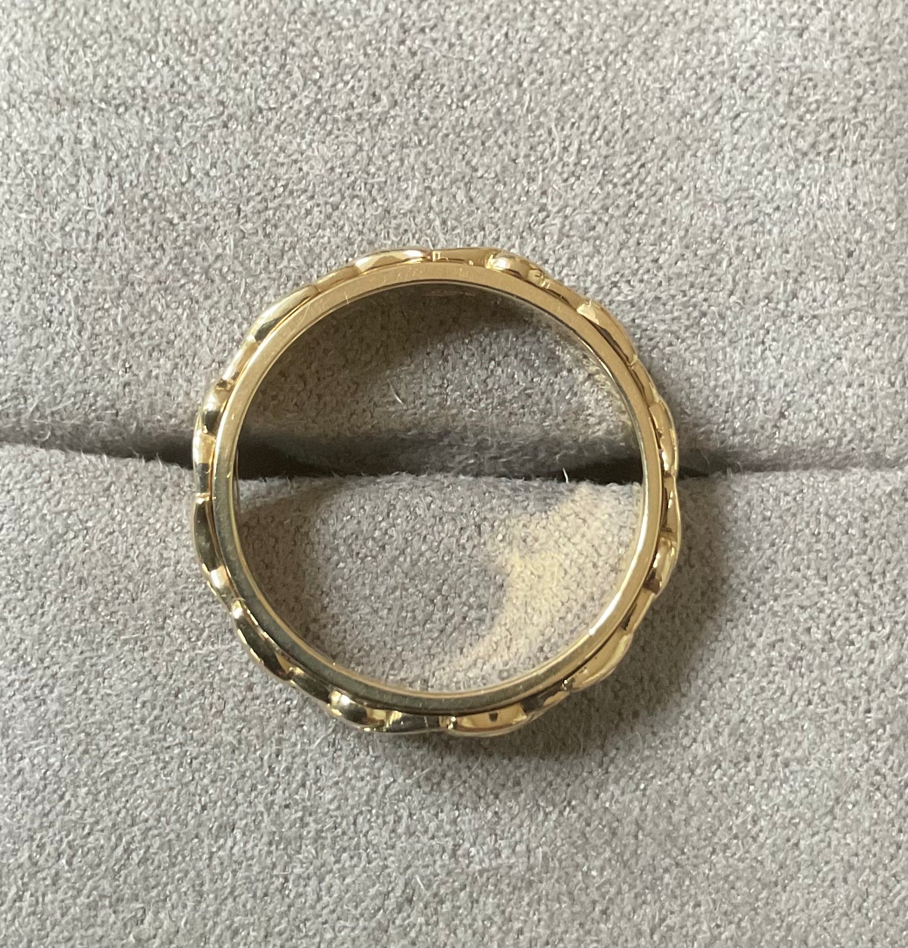 This is a beautiful 18ct Clogau band ring weighing a substantial 6.29g! It is sold as a wedding ring and is obviously perfect for that purpose but it would look lovely on any finger, by itself or as a stacking ring. It measures 4mm across and has the Tree of Life design going all the way around it. The inside is engraved with the word ‘Cariad’ and is stamped Clogau with the 750 18ct gold hallmark. The current version of this ring from Clogau is called Promises and only comes in 9ct and retails at £720, so this is a great price for the 18ct version. It is preloved but is in great condition, there are some small marks that can be seen with a loupe but there’s nothing obvious to the eye. It will come in the box shown.