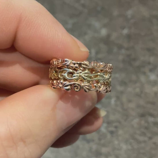 Clogau 9ct 3 row wide band ring in yellow and rose gold size L 7g