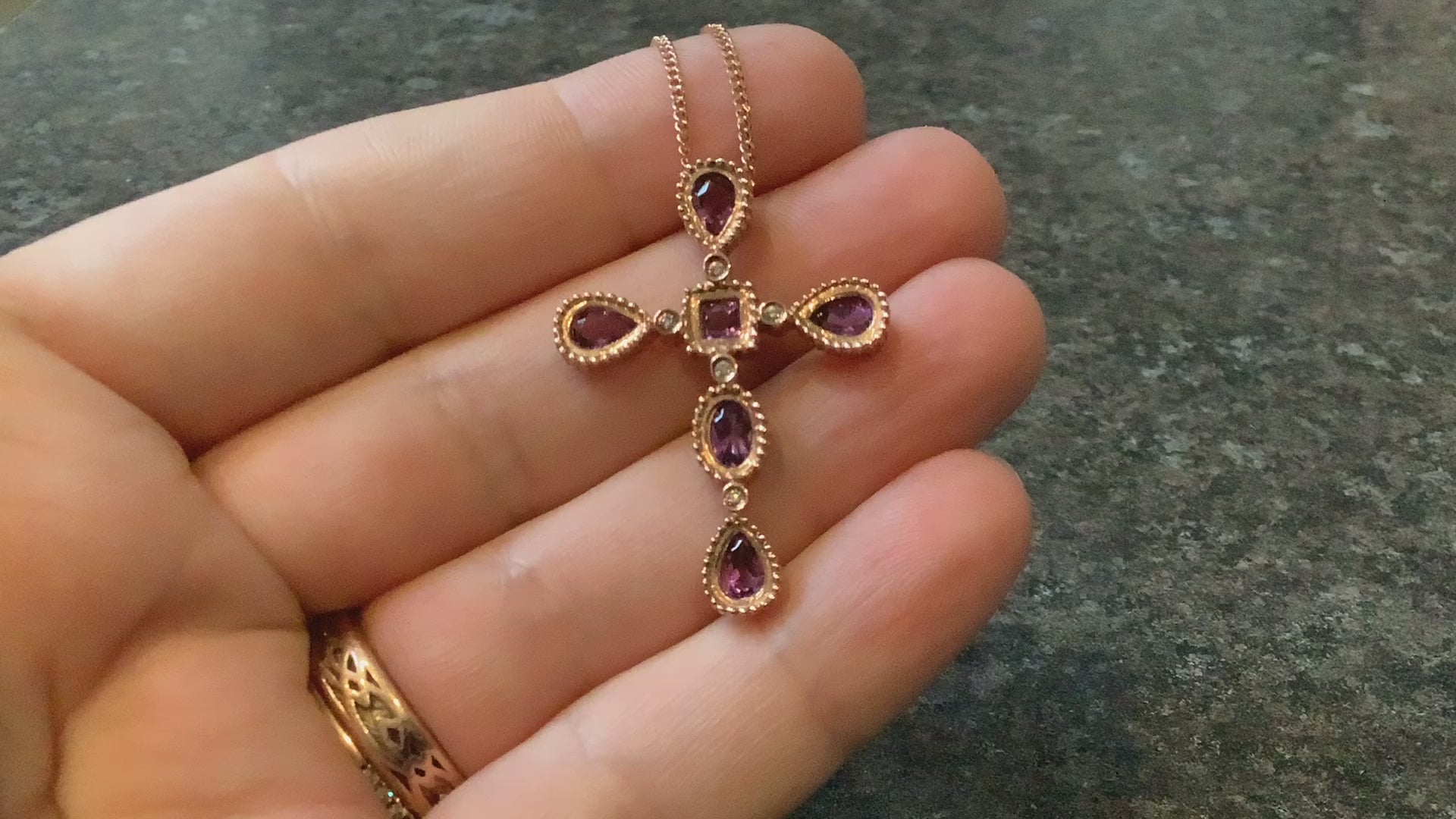 Clogau 9ct Amethyst and Diamond rose gold cross pendant necklace 18"