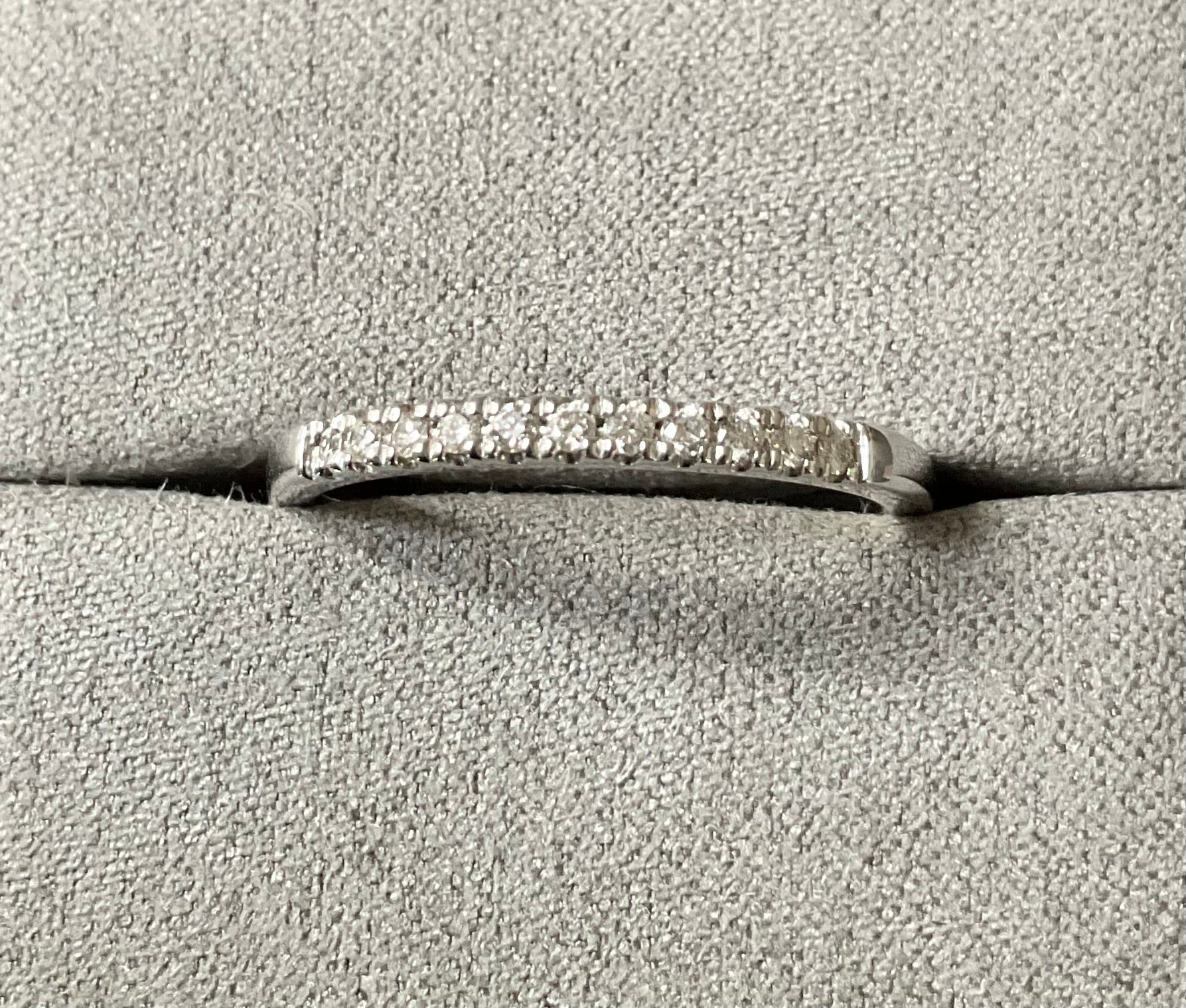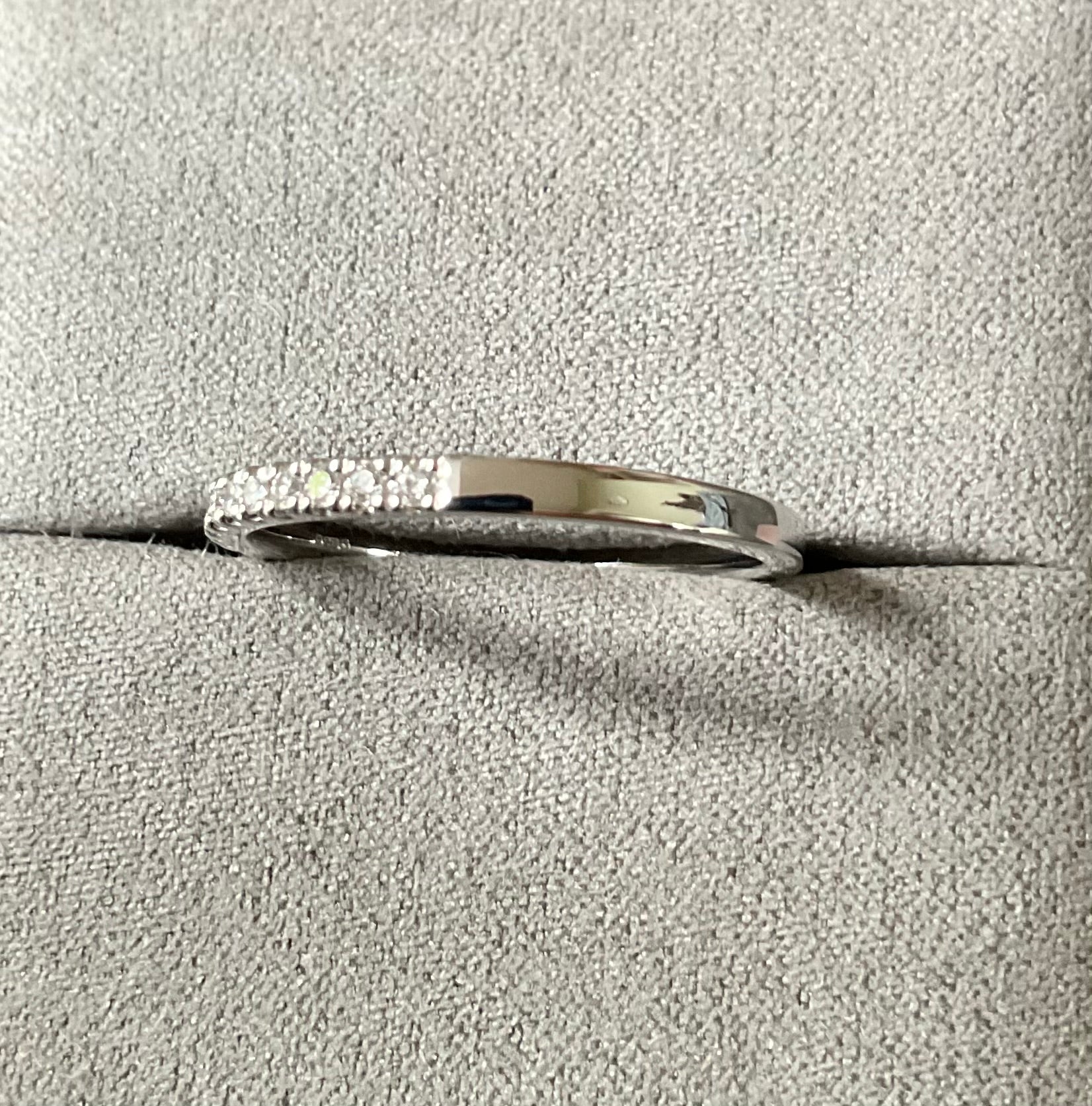This stunning Clogau ring, as its name suggests, has timeless elegance. It’s simple, classic and absolutely beautiful. It is sold as a wedding ring but would also look gorgeous as an engagement or an eternity ring. On the other hand, it’s so pretty, you don’t need a reason to wear it, it would look amazing on any finger, by itself or as a stacking ring! The 9ct white gold band is 2mm wide and set with 11 dazzling round cut diamonds. The inner band has the rose gold Tree of Life motif and has the Clogau stamps and hallmarks for 9ct gold. This ring is in new condition, having never been worn. It comes in the Clogau box shown, with a Clogau cleaning cloth. It is still available to purchase from Clogau for £750, as shown in the last photo.