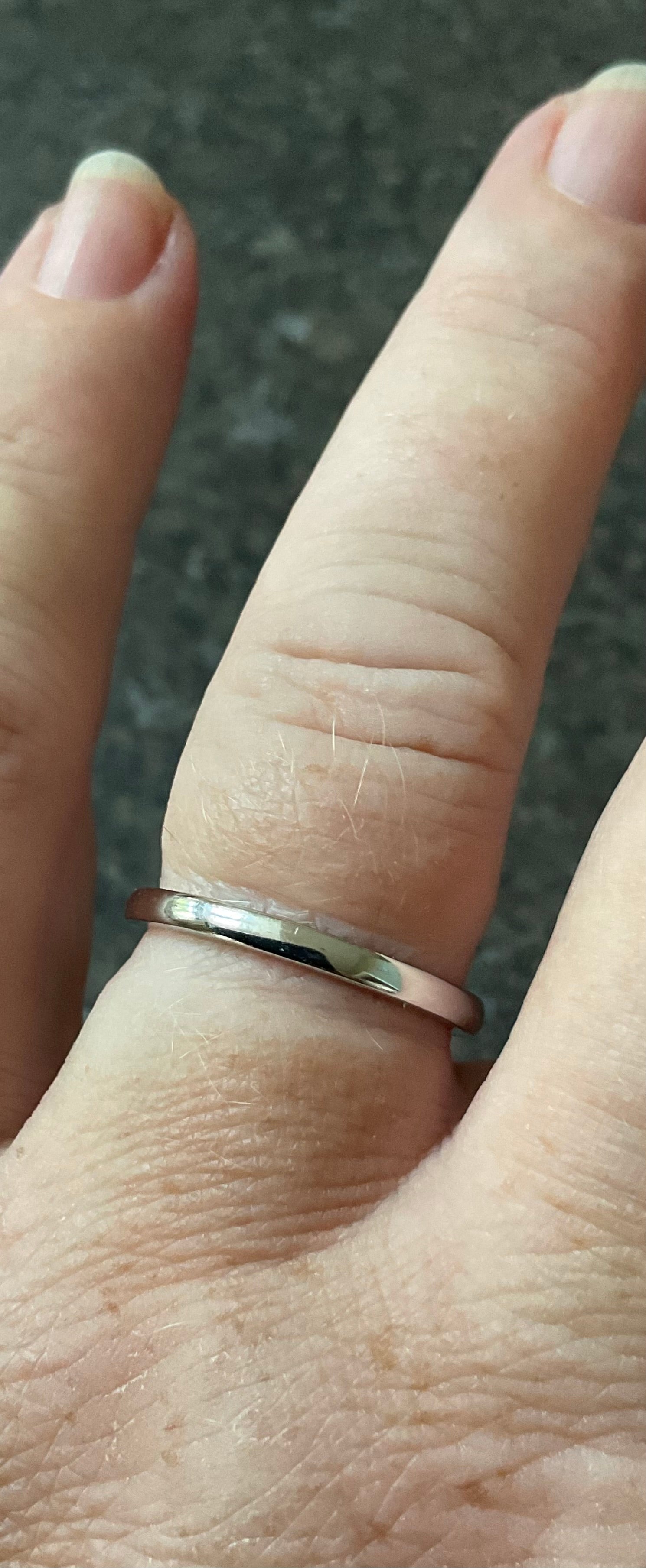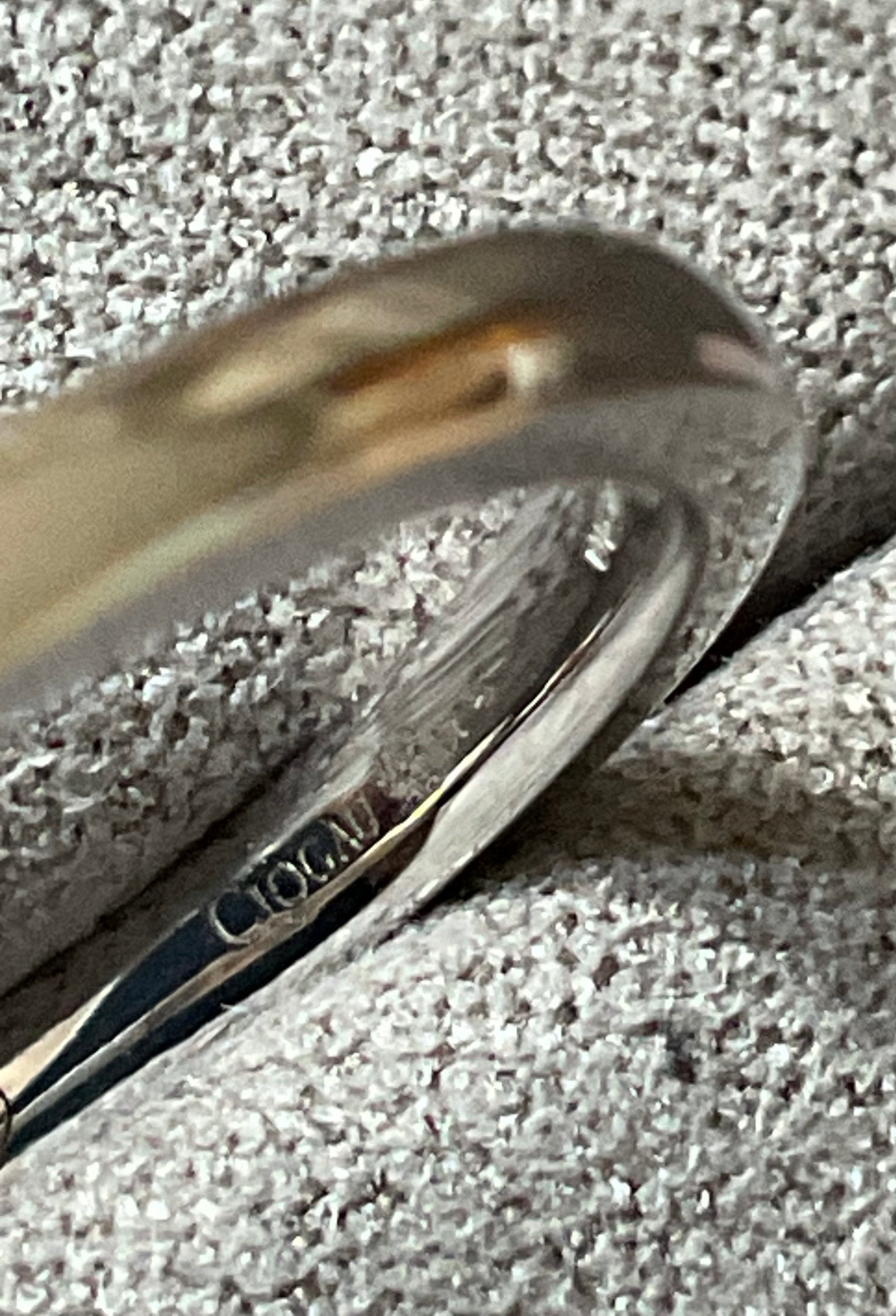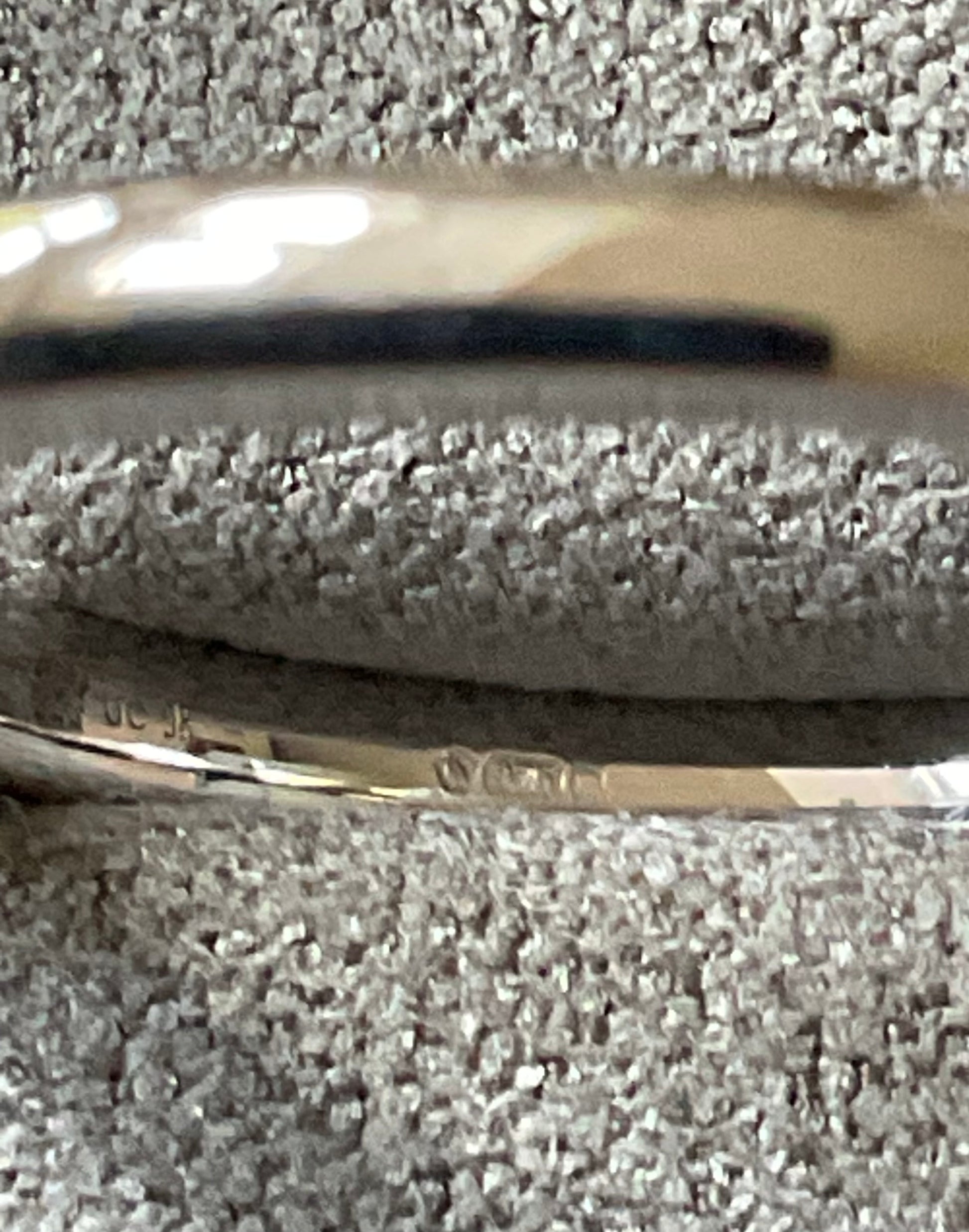 This is a beautiful, simple and elegant Clogau Court Shaped wedding band ring that is perfect for stacking alongside an engagement and eternity ring. It obviously doesn’t need to be worn as a wedding ring, it can be worn on any finger! The band measures 2mm across and has the 375 9ct white gold hallmark and the Clogau stamps. The ring is a size P and is pretty much all white gold, apart from a rose gold Tree of Life insignia on the inner band. It’s only been worn for the photos, so is in excellent condition and comes in the Clogau box shown with a Clogau cleaning cloth.