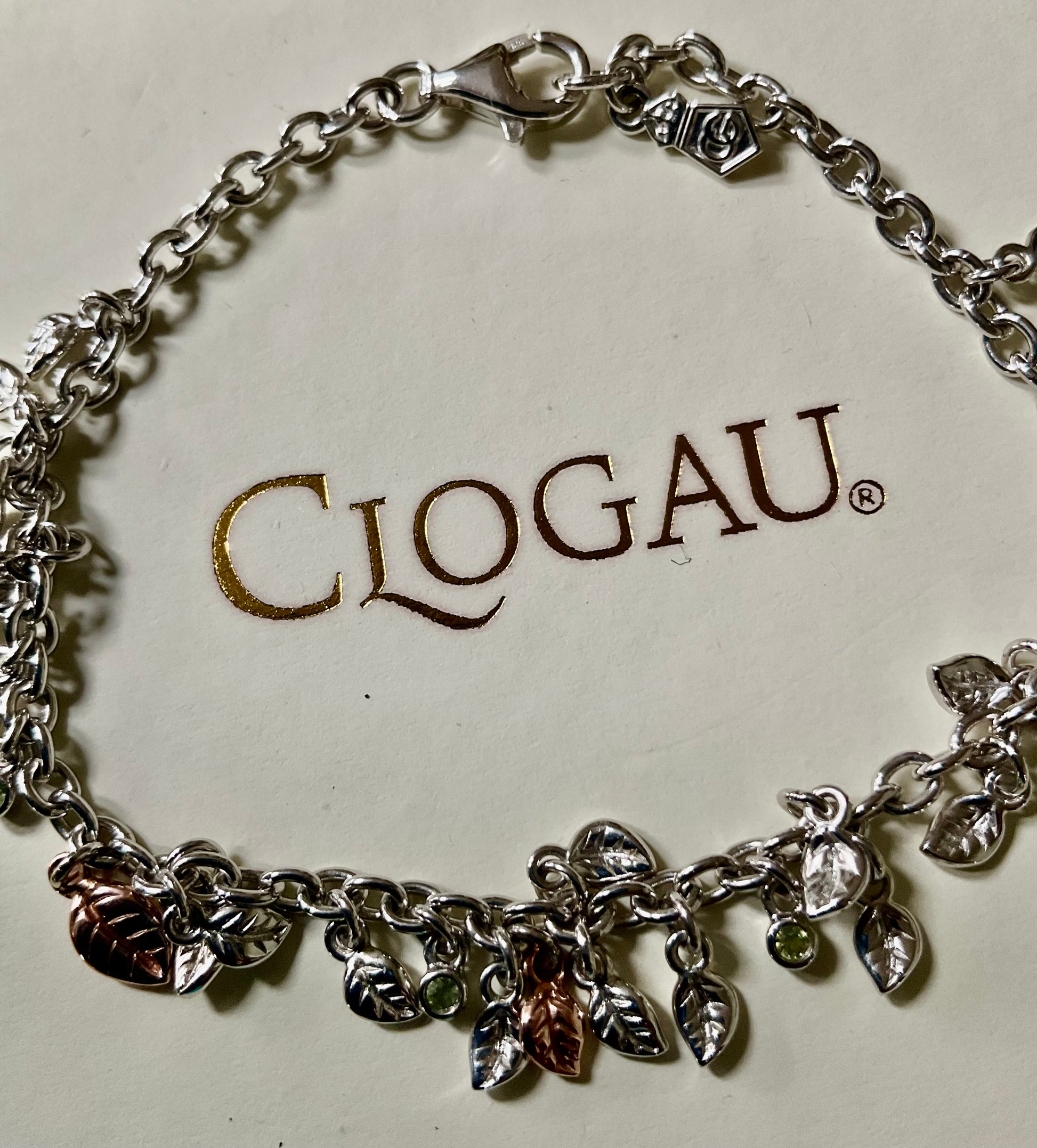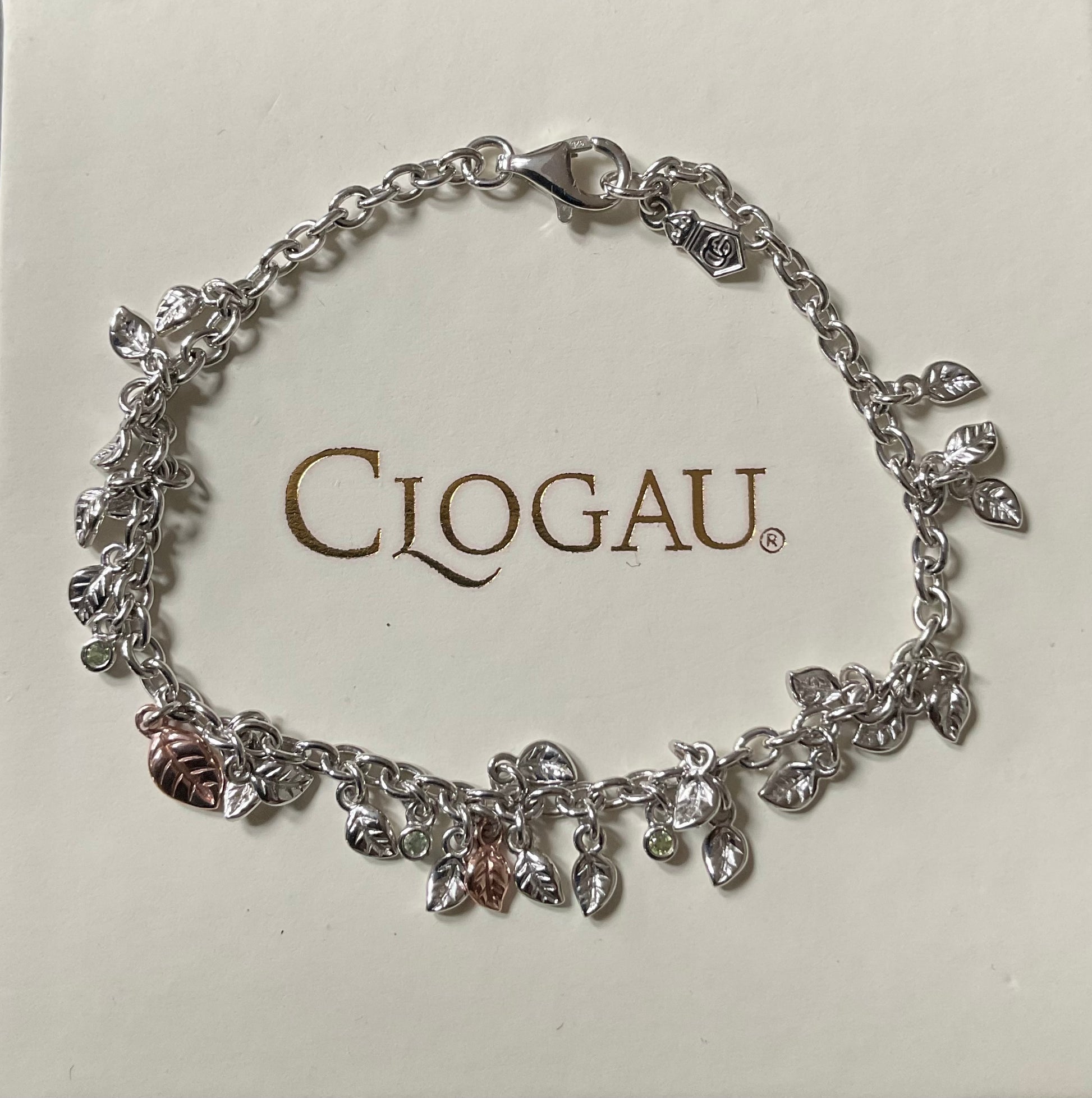 Clogau Awelon Peridot Leaves bracelet 18.5cm in silver and rose gold