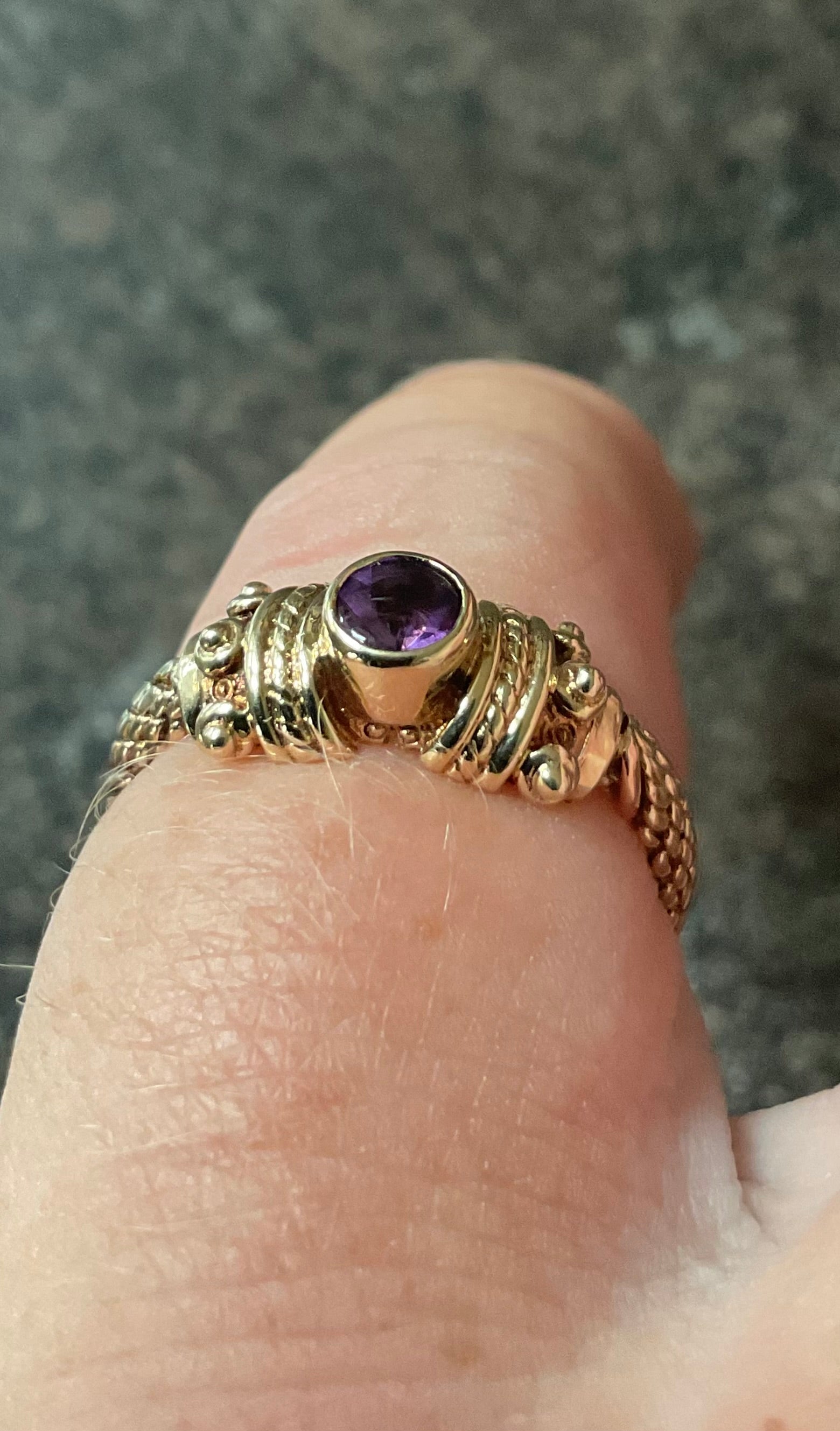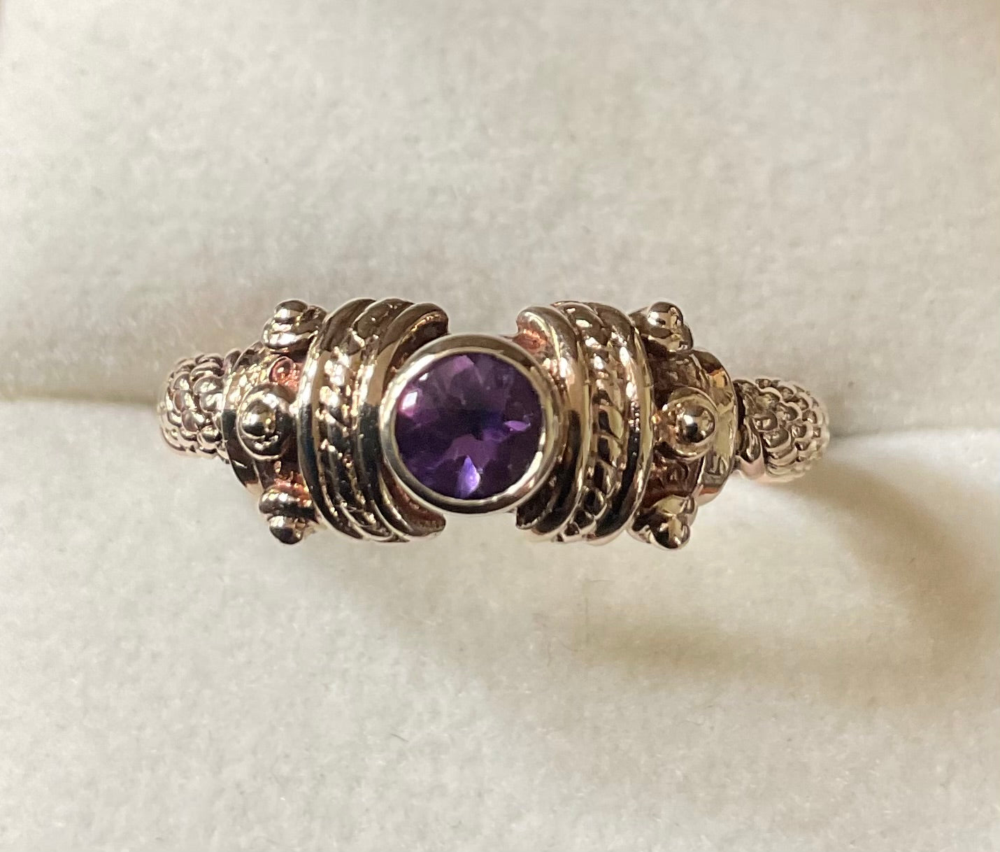 Clogau 9ct Rare Vintage Amethyst Cabochon Byzantine Weave ring size O 1995 yellow and rose gold