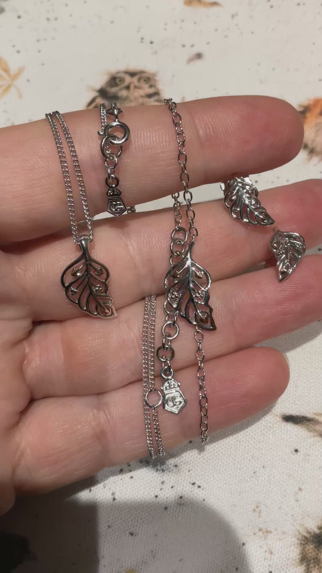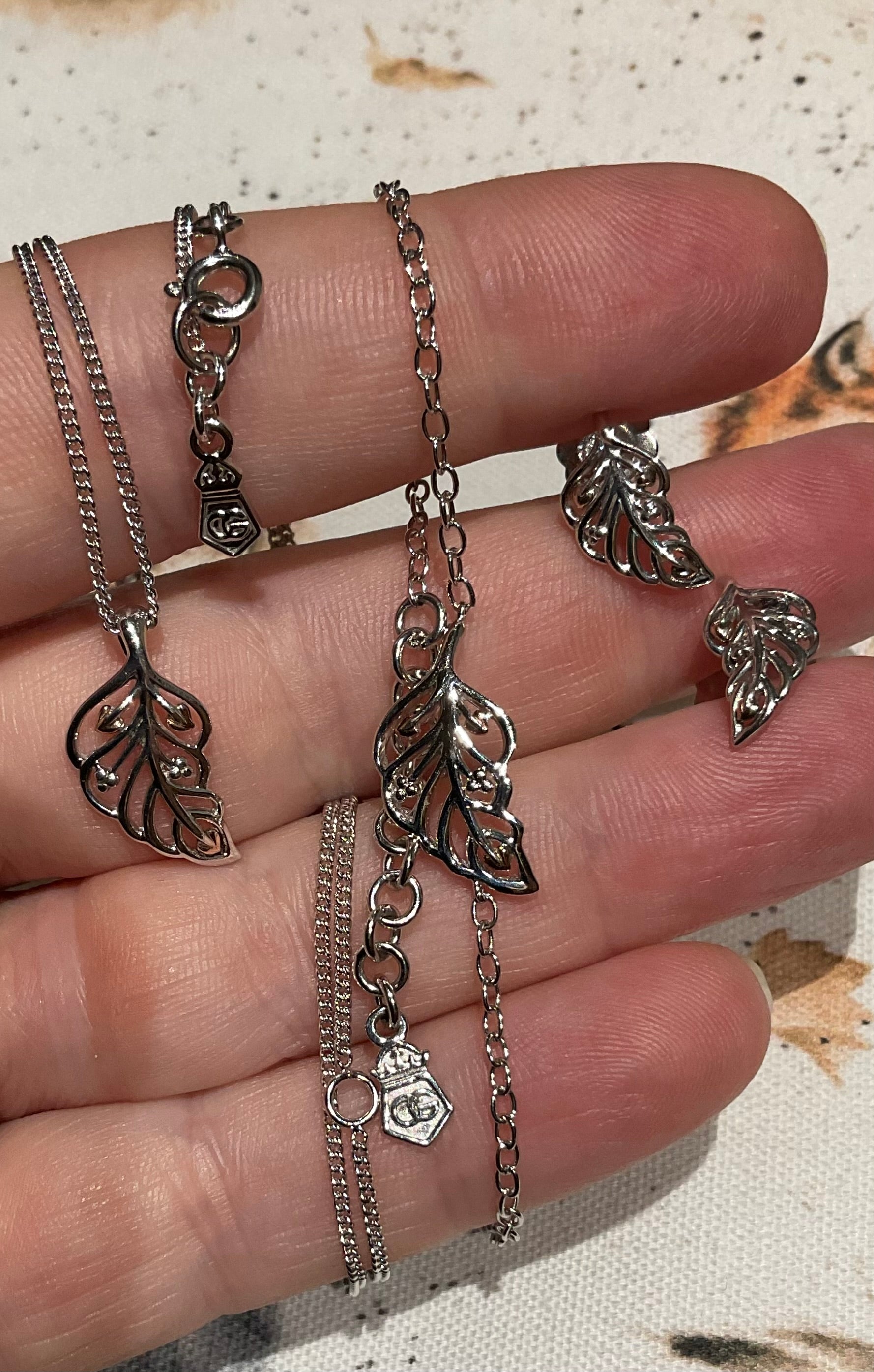 Clogau Debutante Feather necklace, bracelet and earrings set in silver and rose gold. These are preloved with small signs of wear on very close inspection (earring posts aren’t 100% straight but not noticeable when wearing). The necklace has a Clogau silver chain with Clogau tag and can be worn at 18, 20 or 22” and the pendant measures 2cm from the top of the bale and 1cm wide. The bracelet can be worn from 16 to 18.5cm with the feather detail measuring 2cm long and 1cm high. The stud earrings measure 15x8mm, are hallmarked on the posts and have the original Clogau stamped butterfly backs. They will come in Clogau packaging. I can sell as the set or as individual pieces at the prices shown.