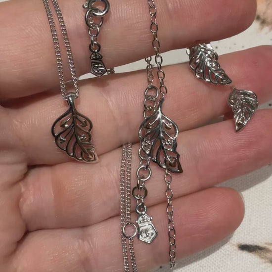 Clogau Debutante Feather necklace bracelet & earring set silver & rose gold