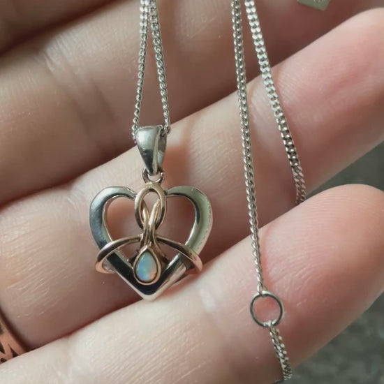 Clogau Dwynwen Forever Yours Opal Heart pendant necklace 18-22” in silver and rose gold
