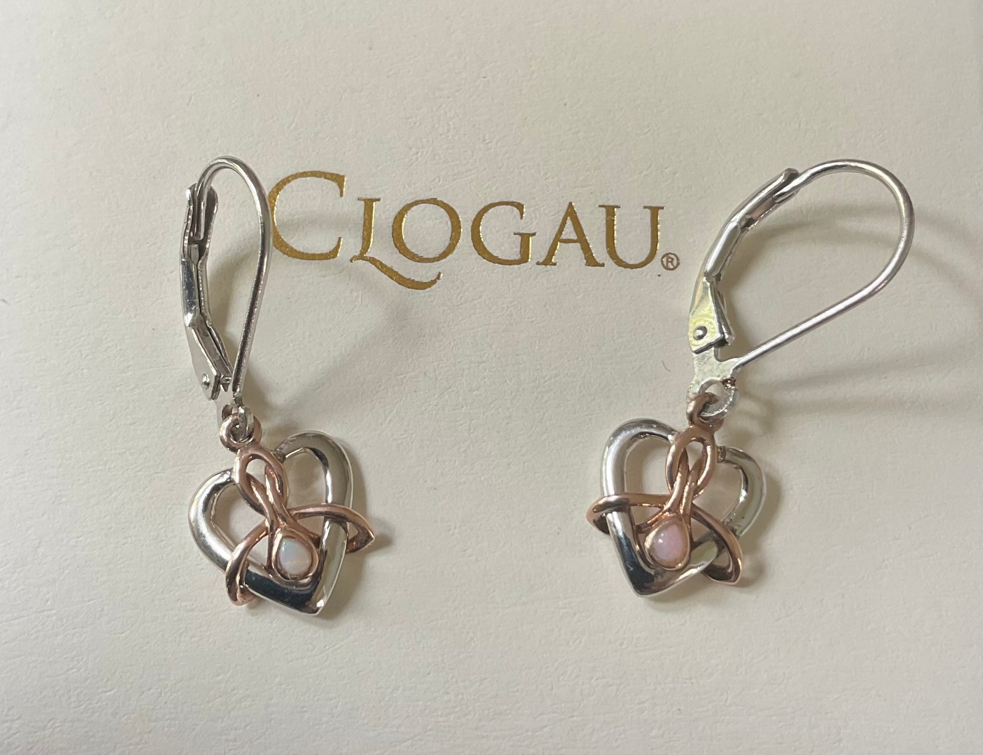 Clogau Forever Yours Dwynwen Opal heart drop lever back earrings in 925 silver and 9ct rose gold