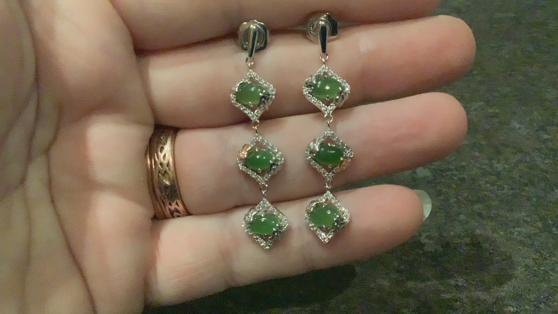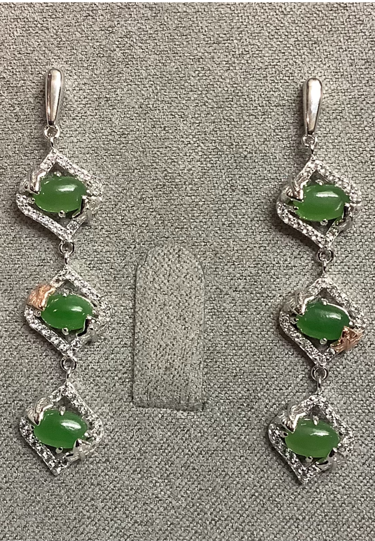 Clogau green jasper Ivy Leaves white topaz earrings silver rose gold RRP £330
