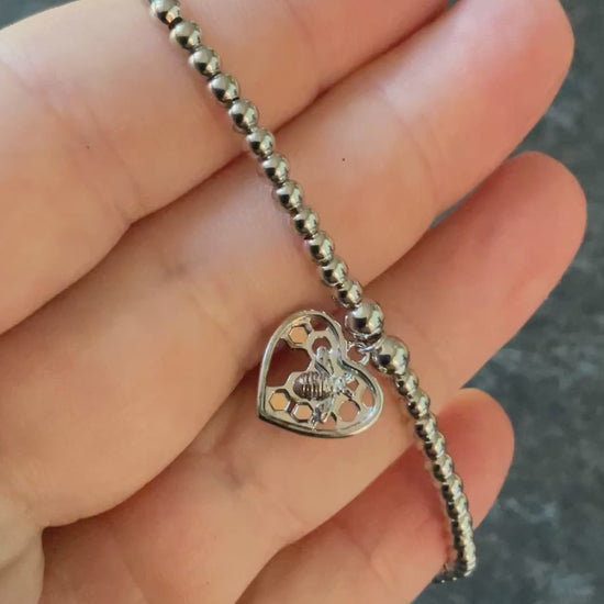 Clogau Honey Bee Honeycomb Heart affinity bead bracelet in silver and rose gold