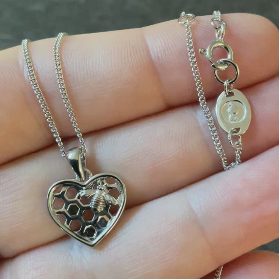 Clogau Honey Bee Honeycomb Heart pendant necklace in silver and rose gold 18-22”