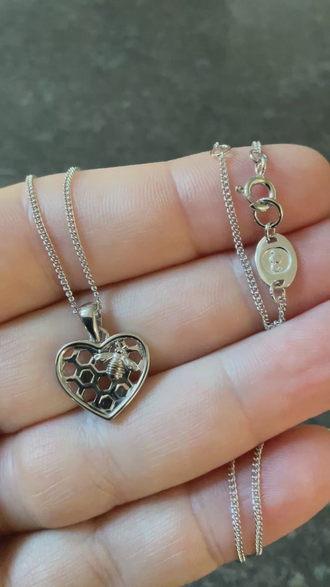 This beautiful Clogau necklace features a heart pendant inset with a cute little Honey Bee, sitting on a piece of honeycomb. The bee and 3 of the honeycomb sections are accented in rose gold. The pendant has a drop of 18mm from the top of the bale and is 14mm across. The Clogau silver chain has the Clogau stamps and hallmarks on the little tag and can be worn at 18, 20 or 22”. The necklace is in excellent, new condition and comes in a Clogau box with a Clogau cleaning cloth. I also have the matching bracelet and ring for sale in my other items.
