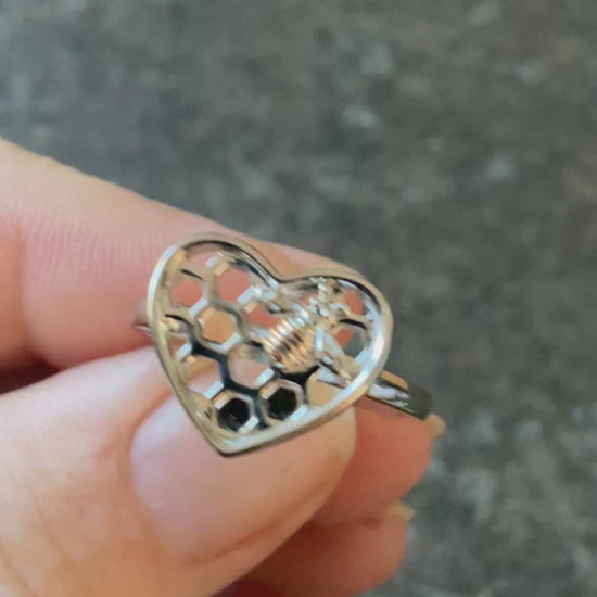 Clogau Honey Bee Honeycomb Heart ring in silver and rose gold sizes O and R