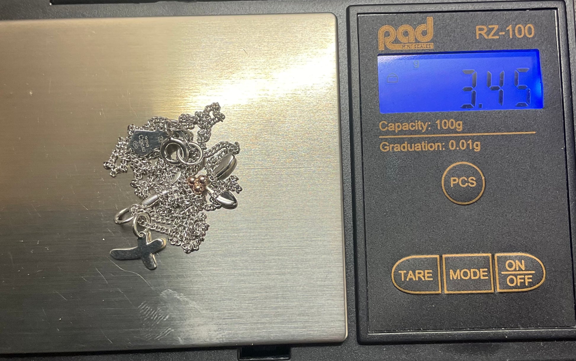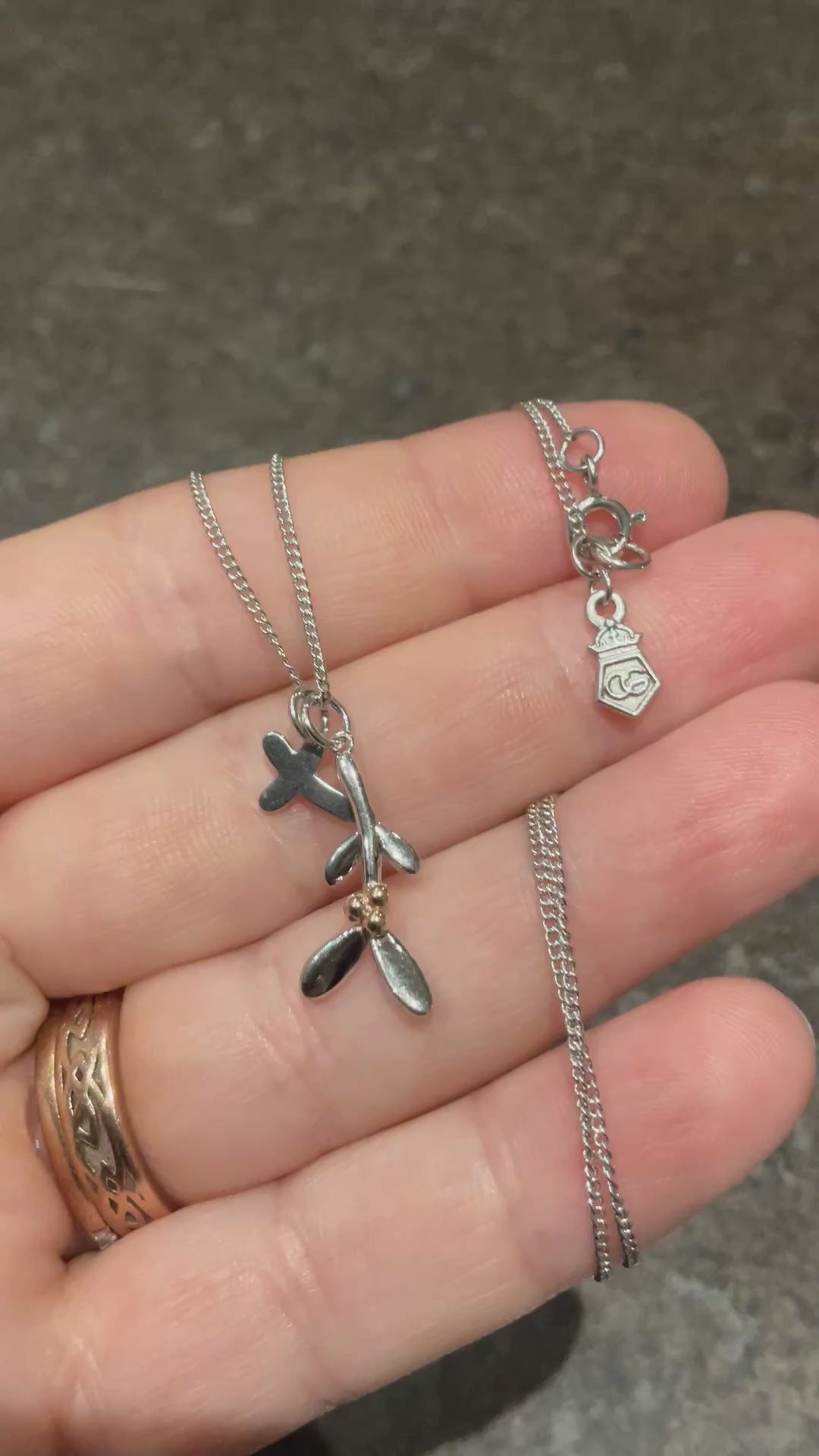 This is a lovely Clogau necklace, featuring a little sprig of mistletoe in 925 sterling silver, with rose gold berries. This measures 2.5cm in length from the top of the bale. Along side this is an independent, free moving sterling silver kiss, measuring about 1cm, allowing you to keep that memory of the little kiss under the mistletoe all year round! The Clogau silver chain measures 18” in length and the little silver tag has the Clogau stamps and hallmarks. This necklace is preowned, so there are small signs of surface wear but it’s in good condition and will come in a Clogau box.