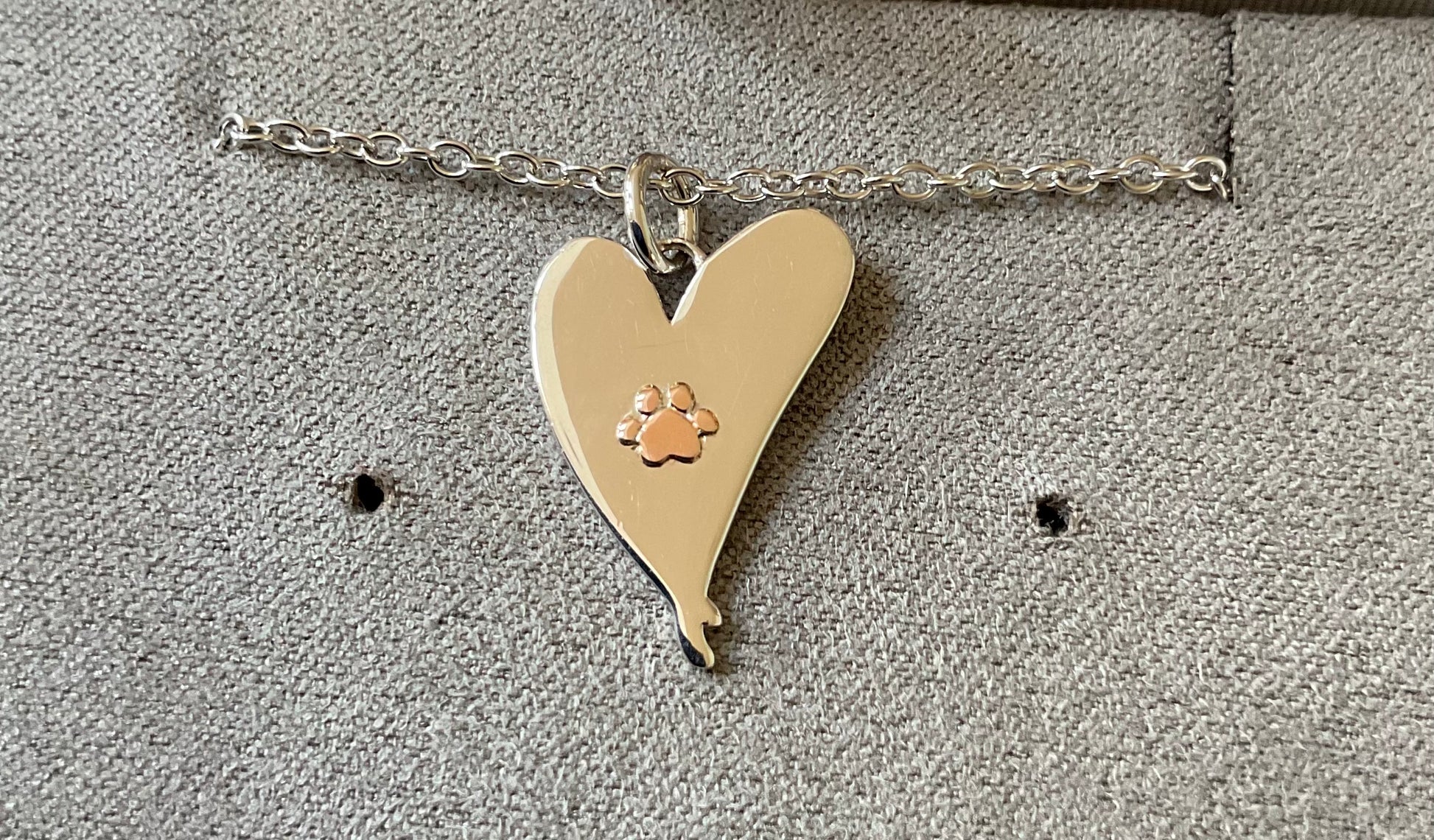 This is a beautiful necklace in excellent condition, it’s only been taken out of the box for the photos and video. The silver heart features a rose gold paw print, with the pendant measuring 2.5cm from the top of the bale and 1.5cm across. The Clogau silver chain can be worn at 18, 20 or 22”. This is perfect for any pet parent and is actually the necklace I wear permanently in celebration and memory of my beloved pets, past and present. It comes in the white Clogau box shown, with a Clogau cleaning cloth.