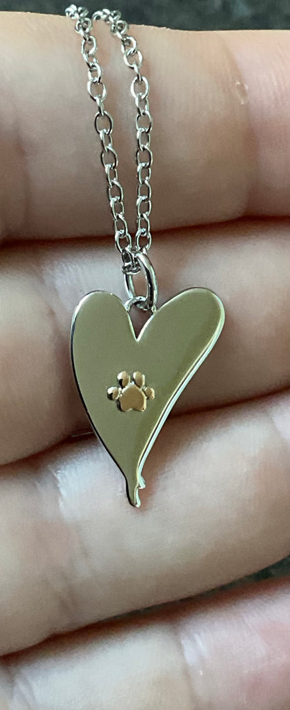 Clogau Paw Prints on my Heart necklace 18,20 or 22” silver and rose gold