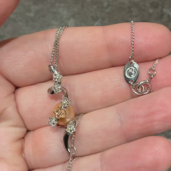 Clogau Peach Pearl Blossom spiral pendant necklace in silver and rose gold 18-22”