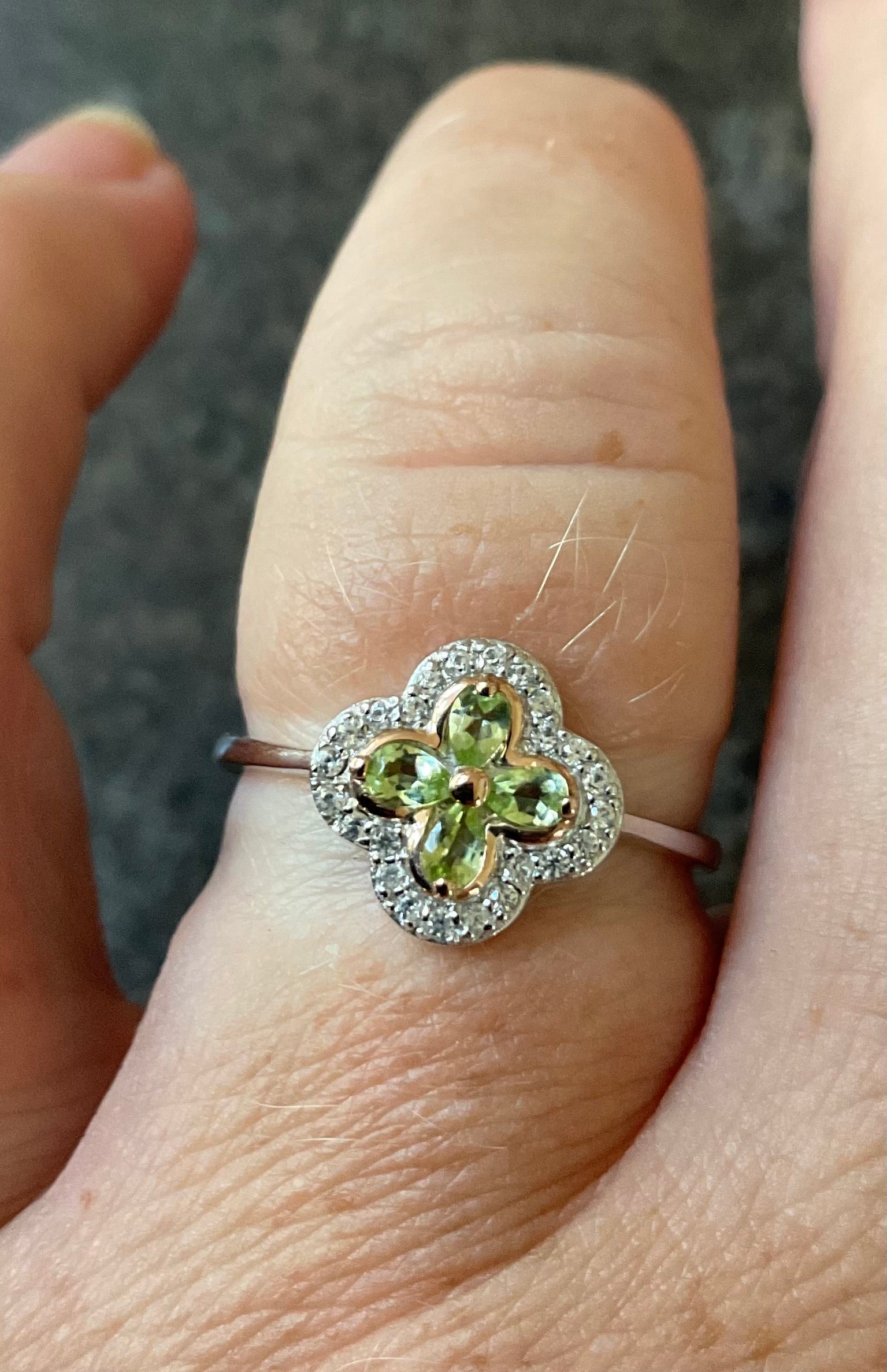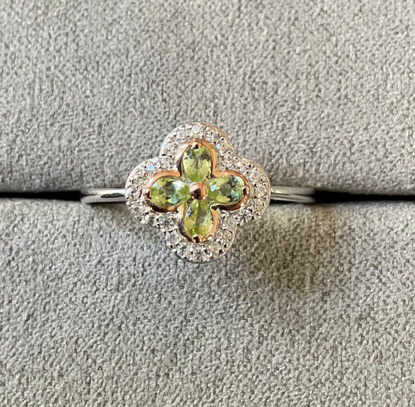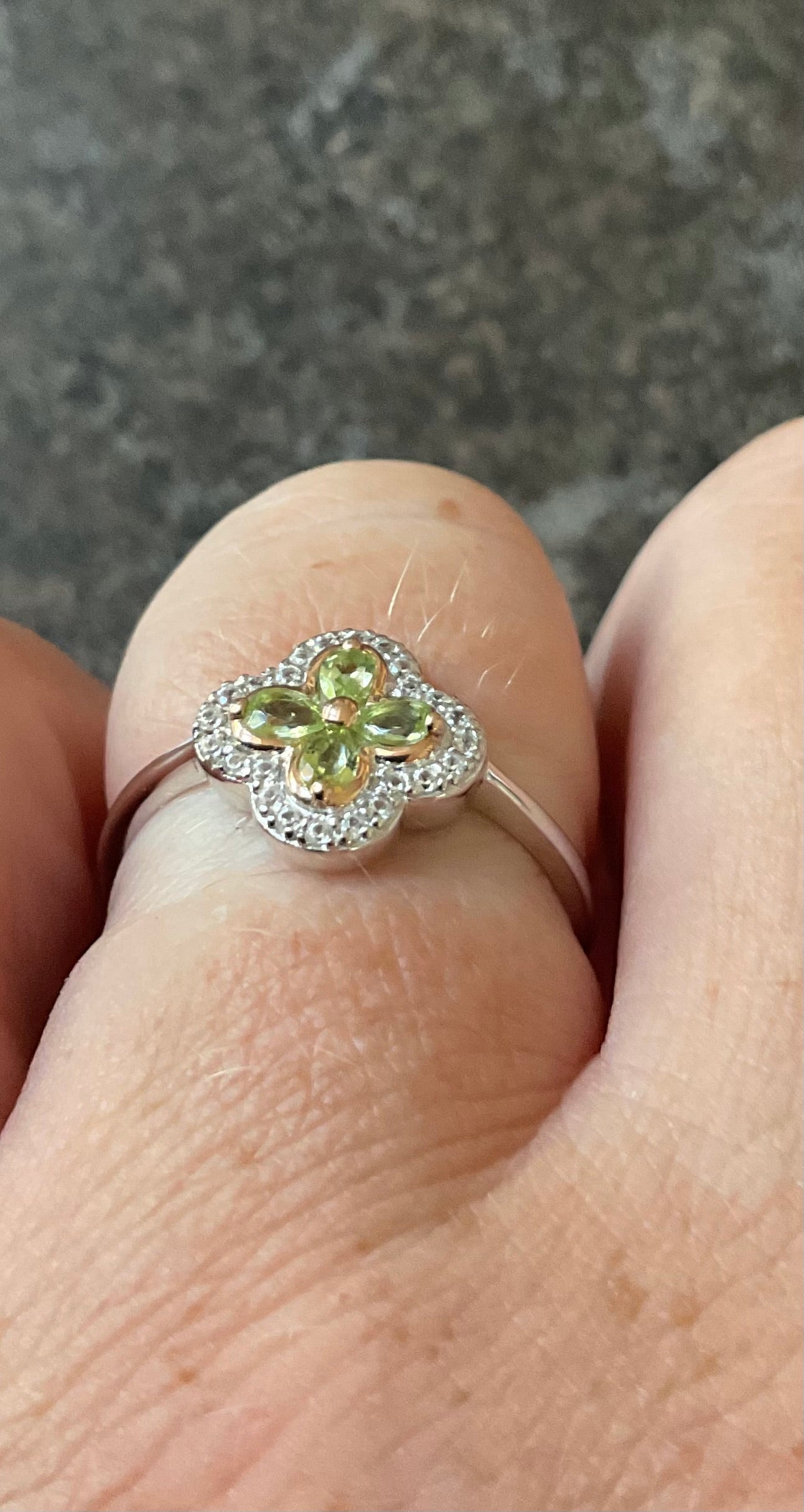 Clogau Peridot Tudor Court ring size P silver and rose gold