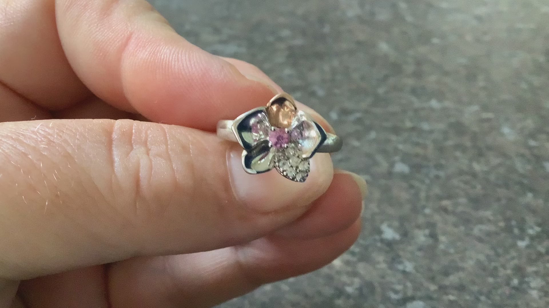 Clogau pink sapphire orchid ring size M silver and rose gold