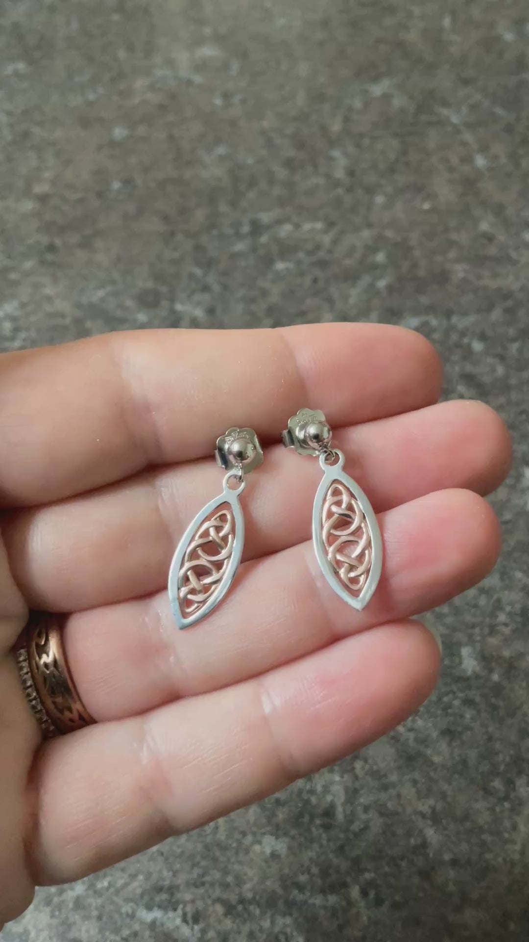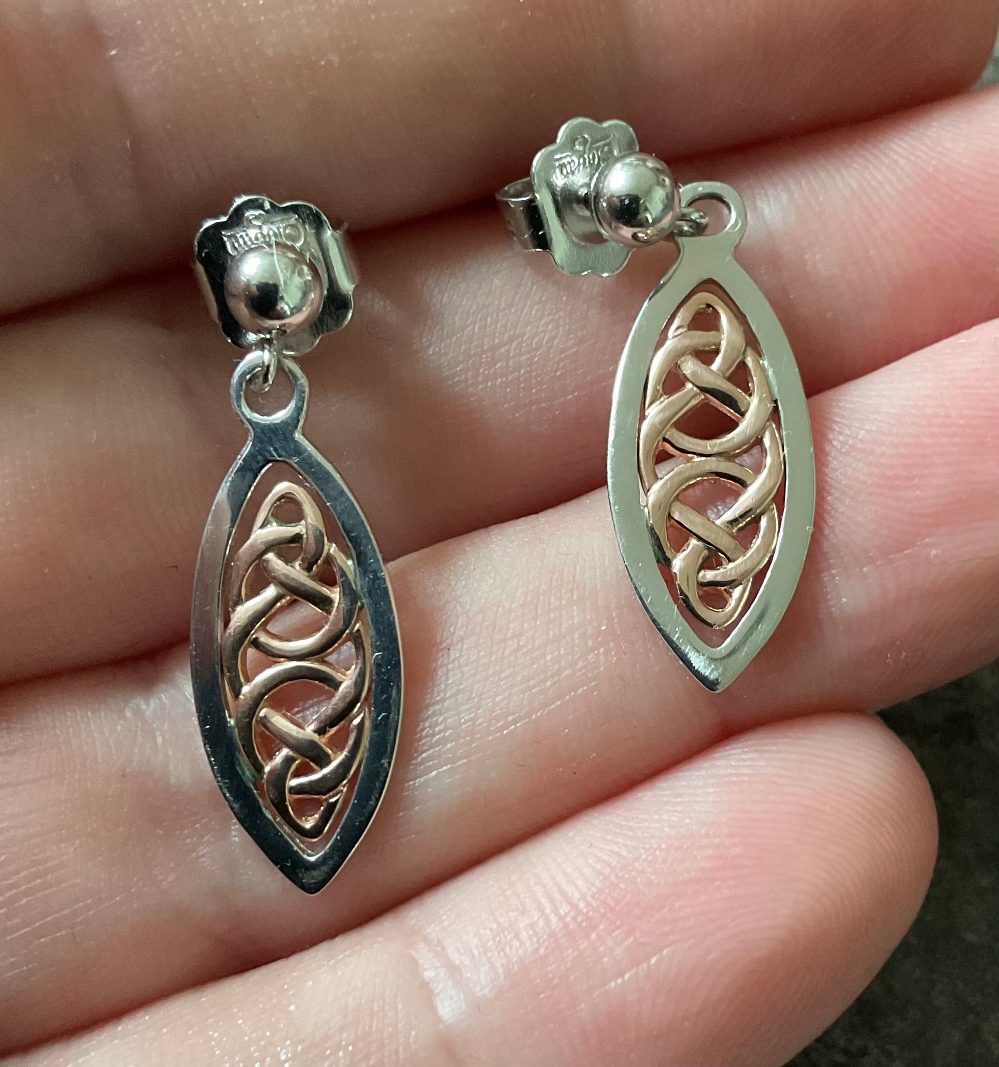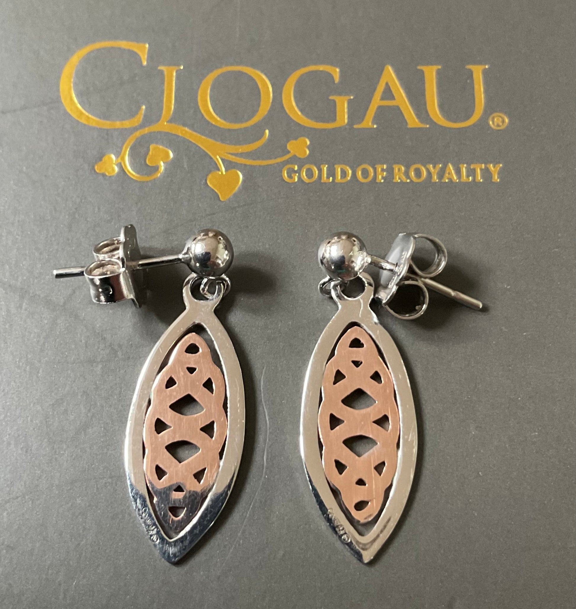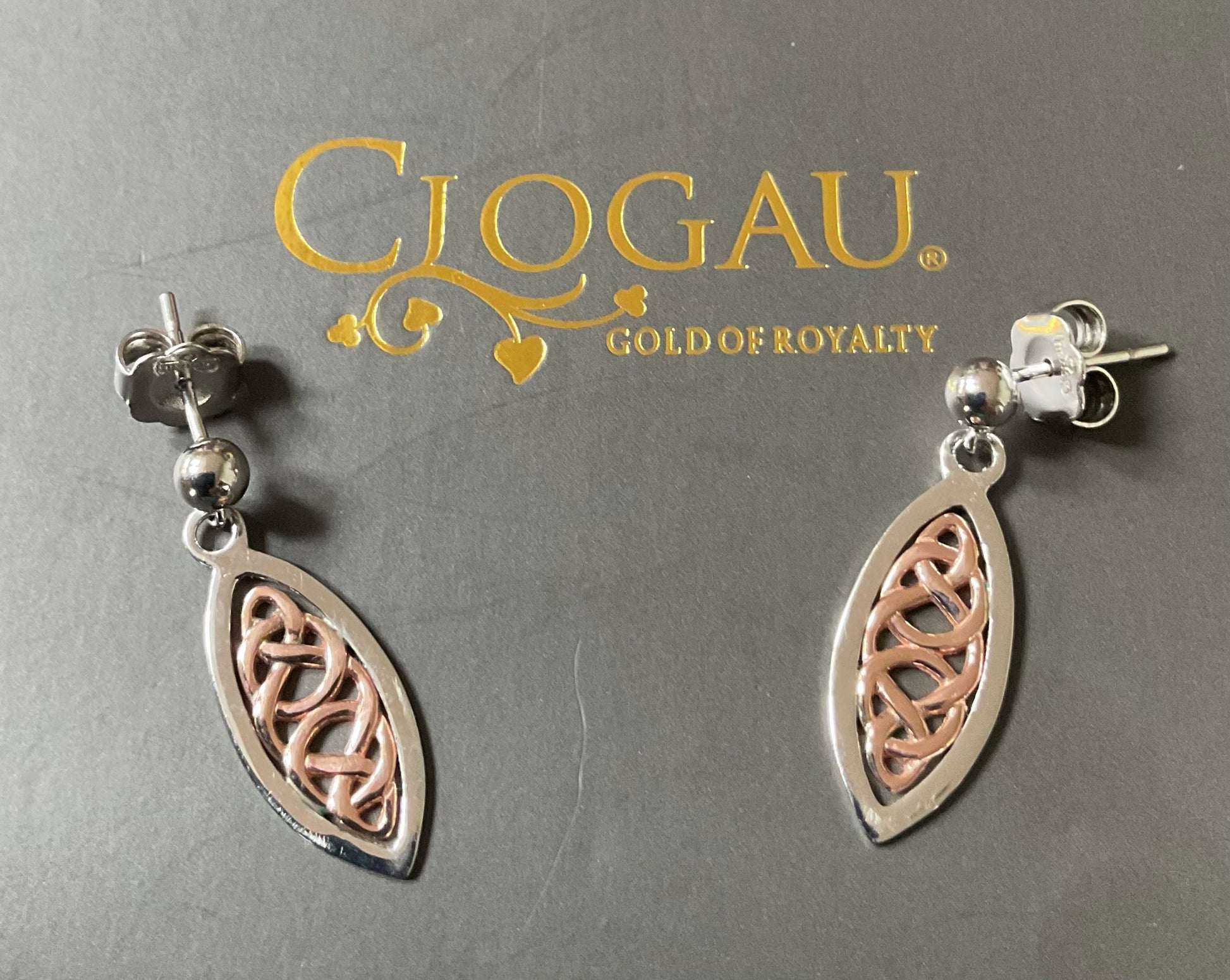 Clogau Queen Eleanor elliptical drop earrings in 925 sterling silver and 9ct rose gold