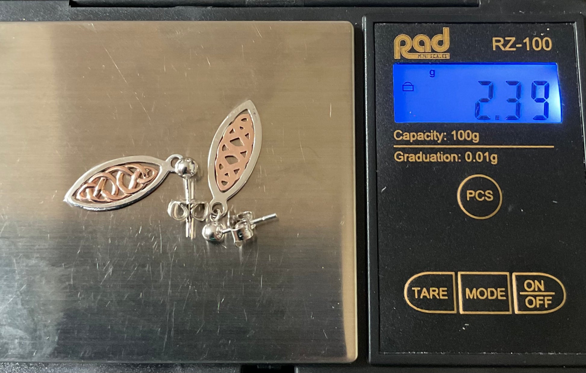 These lovely Clogau Queen Eleanor drop earrings measure 2.7cm in length and 9mm wide. The Queen Eleanor pattern is in rose gold whilst the surrounding elliptical border is 925 sterling silver. The back of the earrings, posts and butterfly backs contain the Clogau stamps and hallmarks. These earrings are preloved and do have signs of wear/ scrapes visible, hence the lower asking price. They will come in a Clogau box and grey pouch. I am selling the matching necklace and am happy to combine postage.