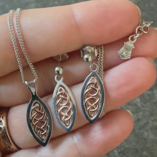 Clogau Queen Eleanor pendant 18” necklace and earrings set in silver and rose gold