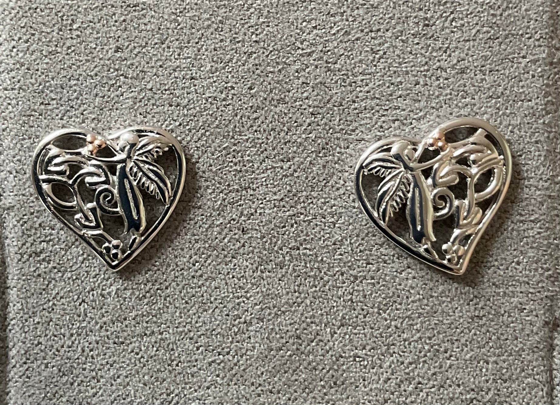 Clogau RARE Fairy Heart Tree of Life stud earrings in silver and rose gold