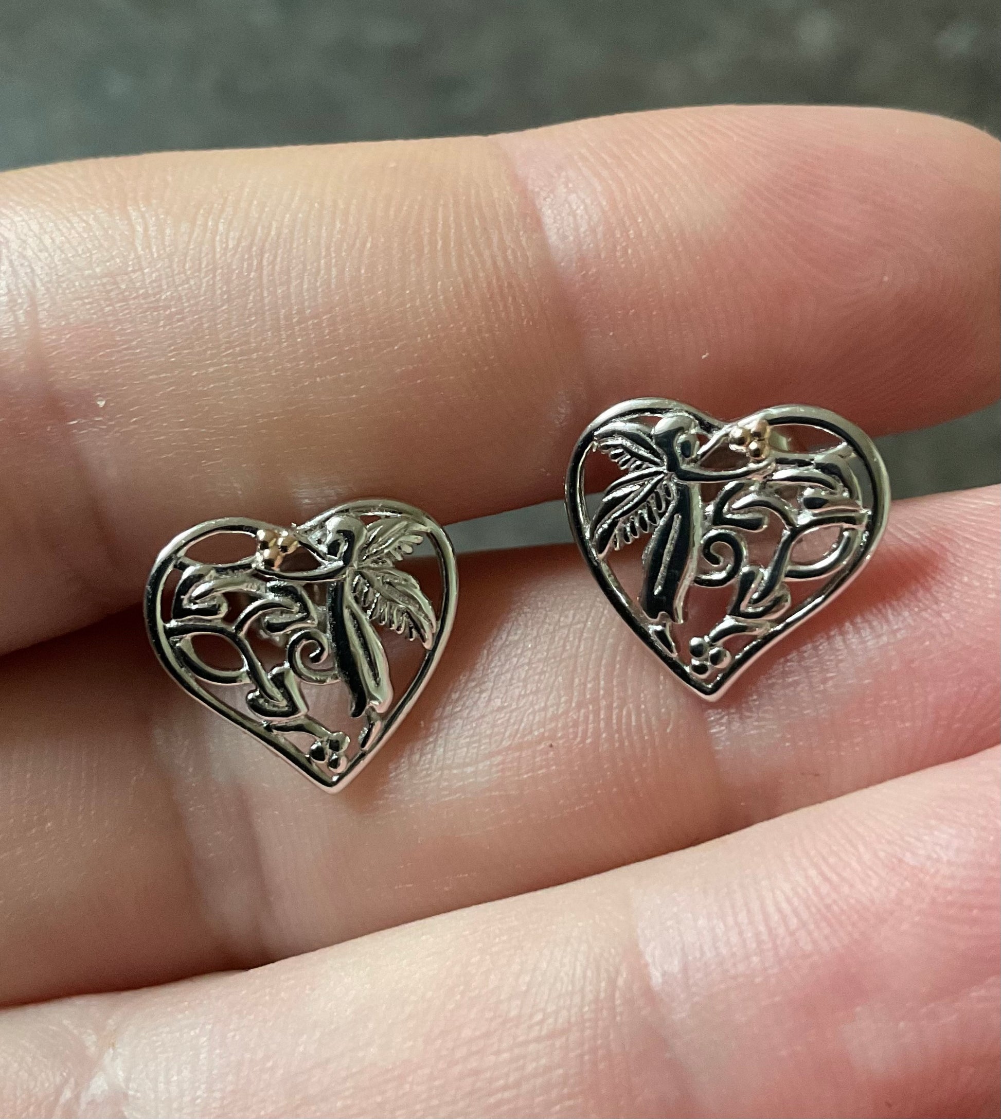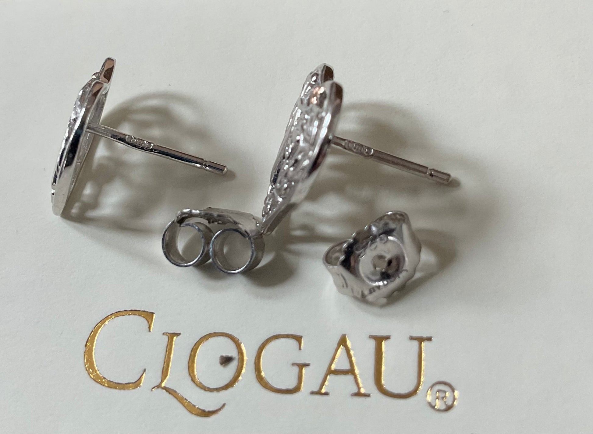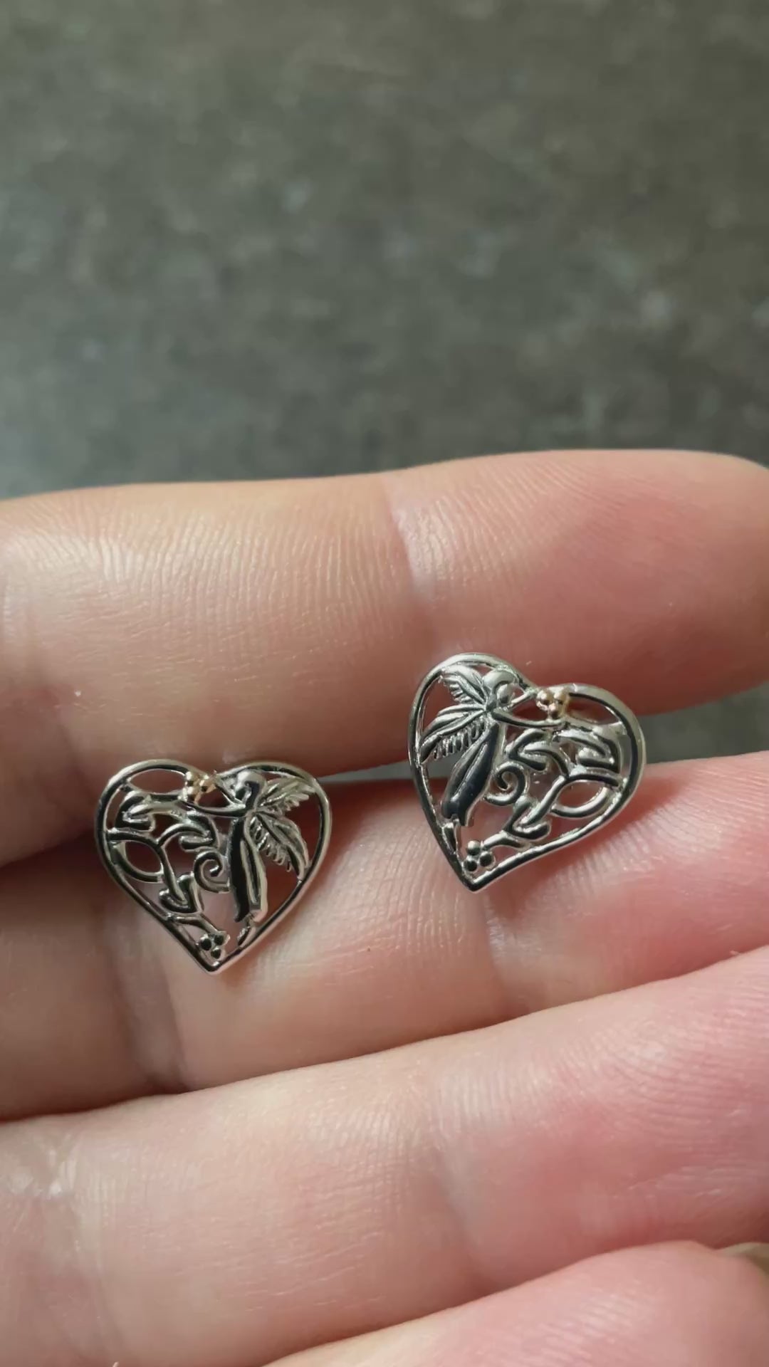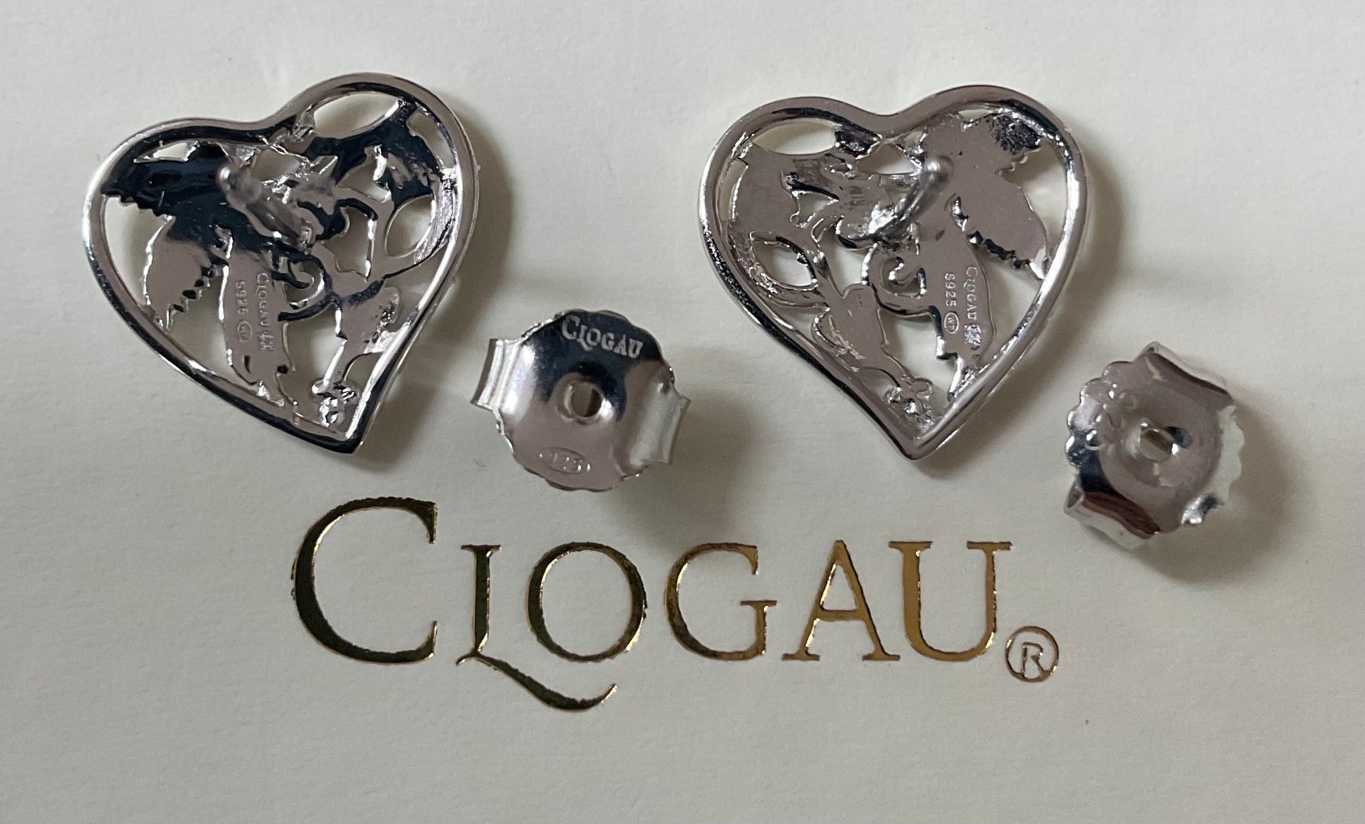 These beautiful Clogau earrings are very hard to come by and feature a heart shape measuring 1.2x1.2cm. Inside the heart is the silver Tree of Life pattern with a fairy or as I like to call her, a guardian angel, holding a bunch of rose gold berries. They have the Clogau stamps and hallmarks on the backs, posts and butterflies. They are in new condition, with no obvious signs of wear, although I always feel the stamps on the posts make them look not 100% straight. They will come in the Clogau box shown with a Clogau cleaning cloth.
