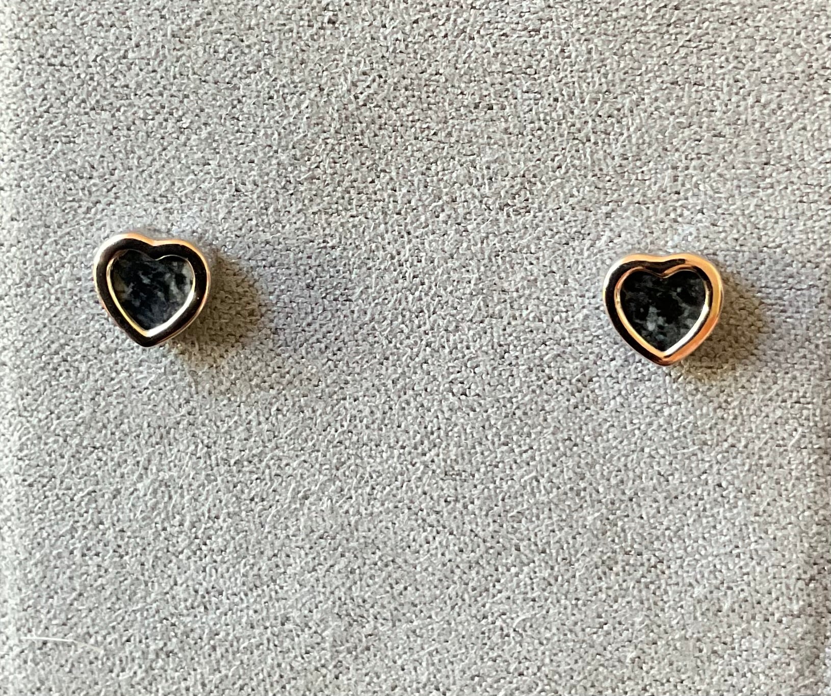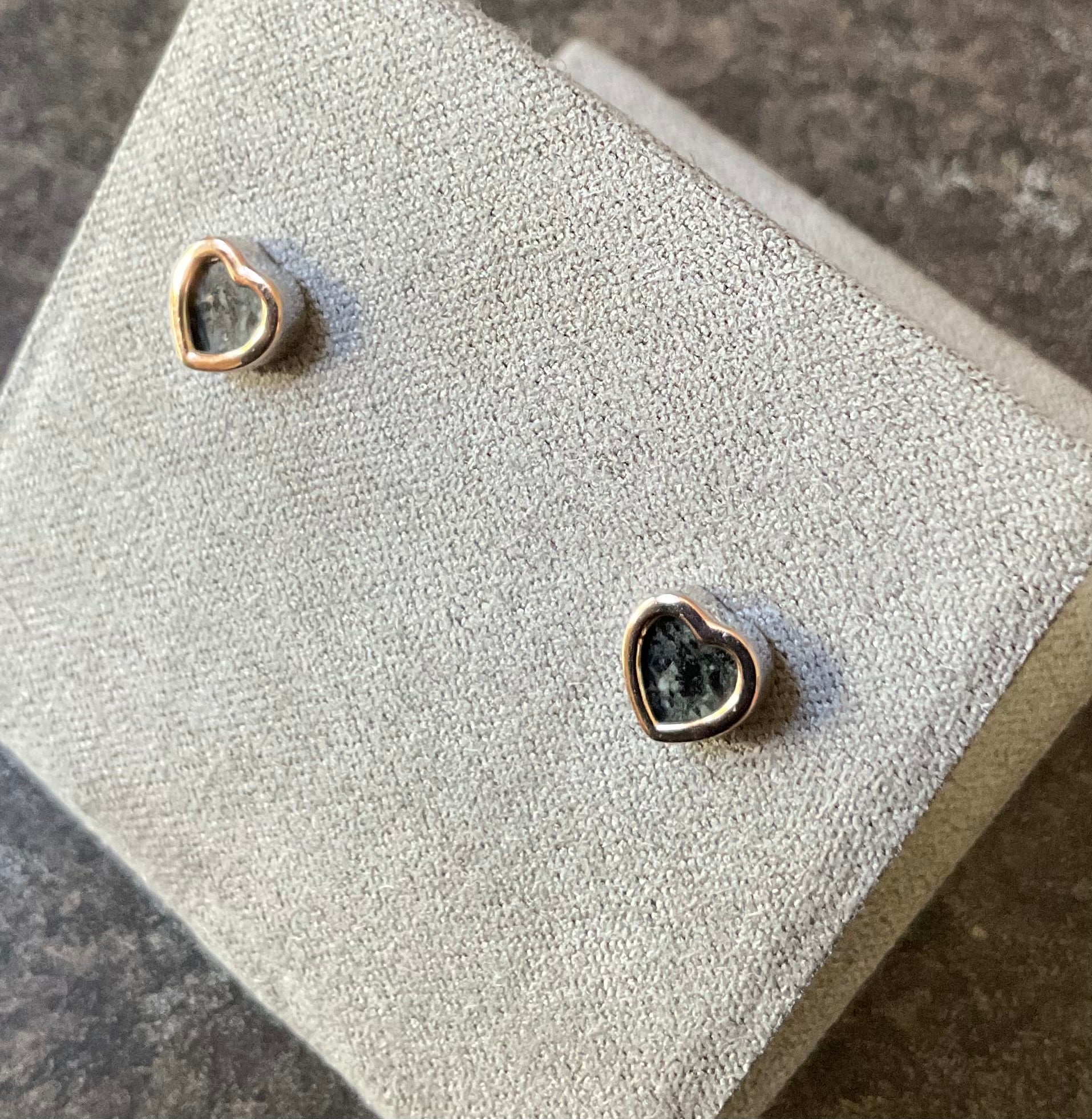 Clogau Rare Heart of Wales Preseli Bluestone Heart stud earrings in silver and rose gold