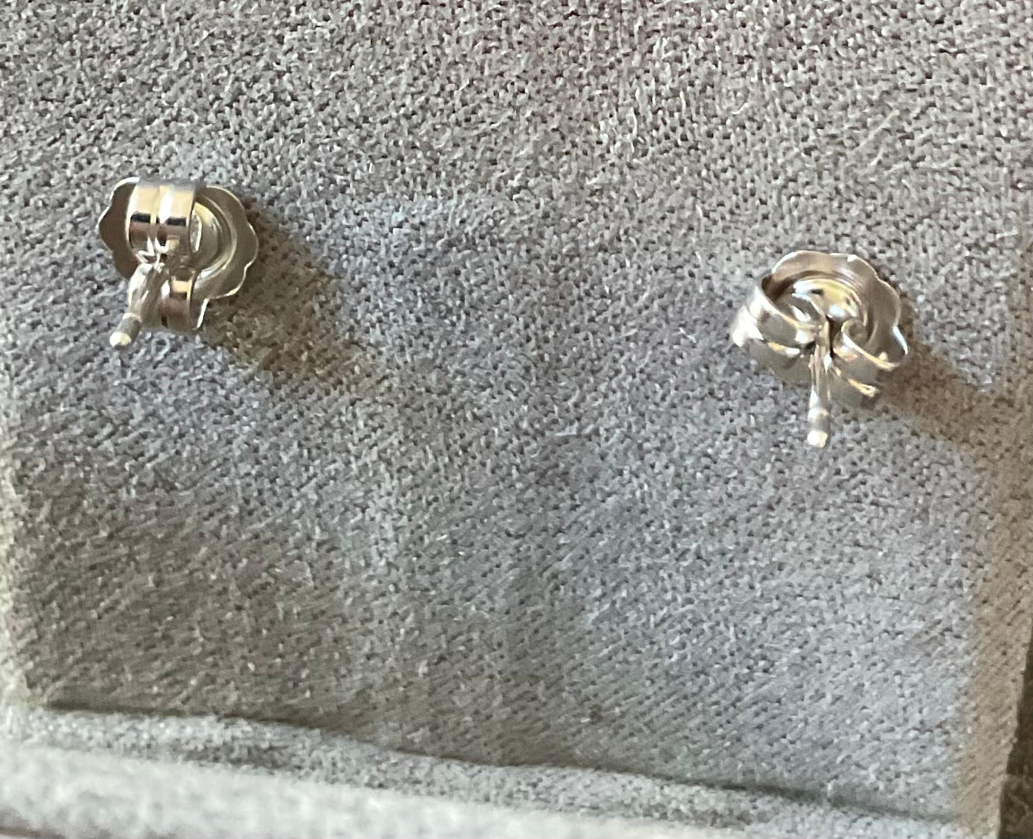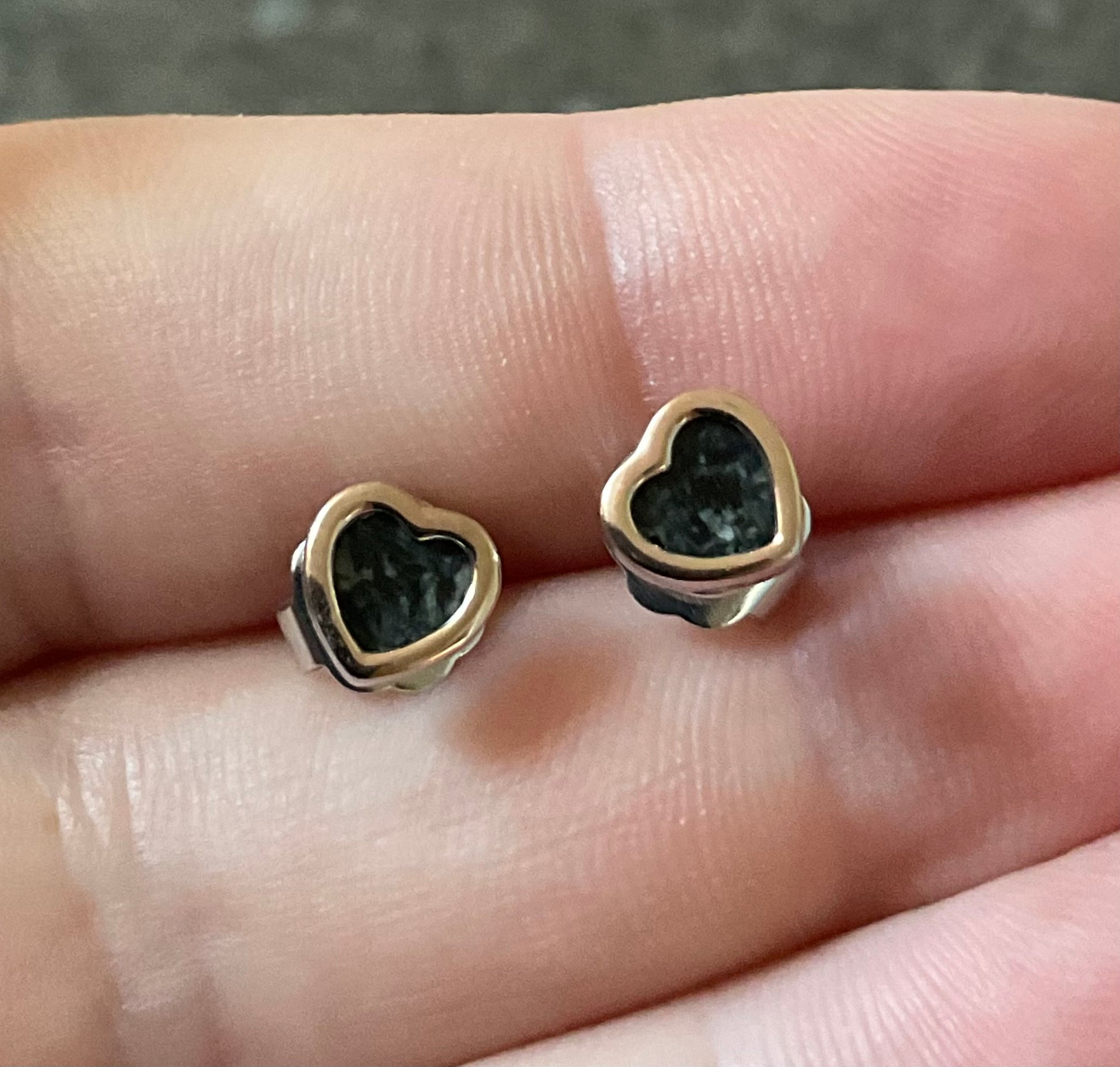 These beautiful, dainty little earrings are really hard to come by and these ones are in excellent condition. They only measure 6x6mm, so can comfortably be worn all day. They feature a heart shaped Preseli Bluestone, the stone that was used to build Stonehenge over 5000 years ago. Wrapped around the heart is a band or rose gold and the rest of the earring is 925 sterling silver. There are Clogau stamps on the earrings and the butterfly backs and the posts have the silver hallmark. They come in a Clogau box with Clogau Cleaning cloth.