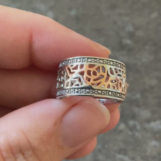 Clogau Royal Roses Wide Band ring size P silver and rose gold