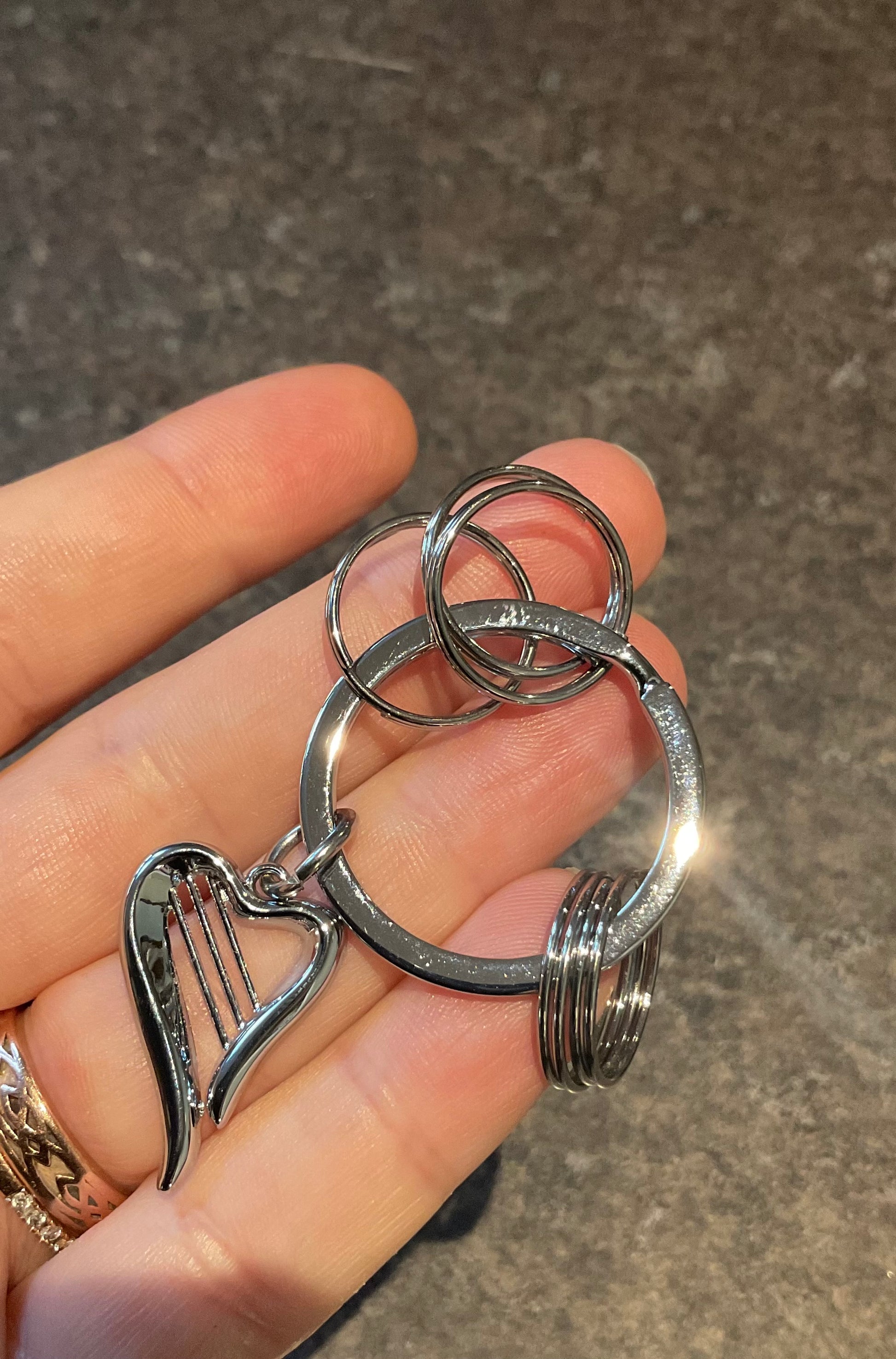Clogau silver tone Heart Strings keyring with 5 ring hoops. Heart strings tag measures 3.3cm from the top of the bale and 1.7cm wide with a Clogau stamp on the back. PLEASE NOTE that they do not make sterling silver keyrings for obvious reasons, this is a silver tone metal. It has never been used but is highly polished so is showing fingers prints under the camera lights, etc. It will come in a Clogau box and pouch.