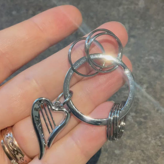 Clogau silver tone Heart Strings keyring with 5 ring hoops