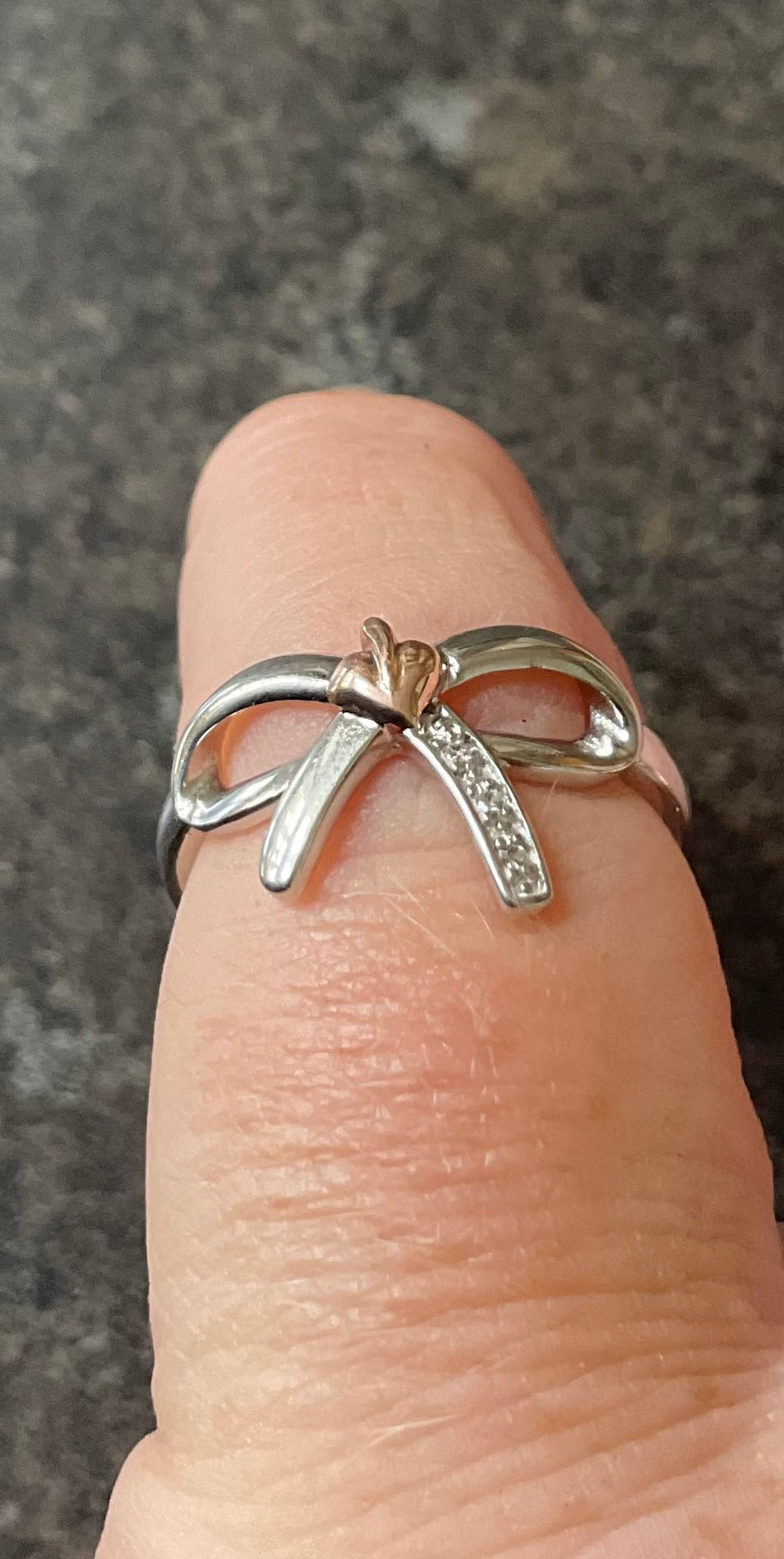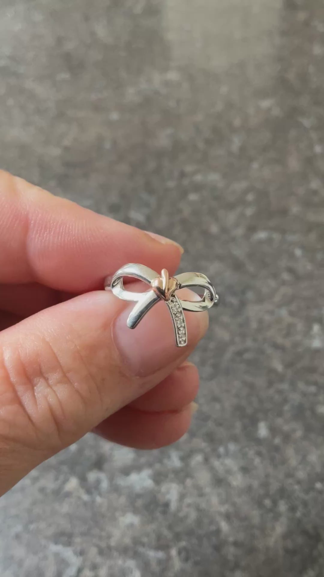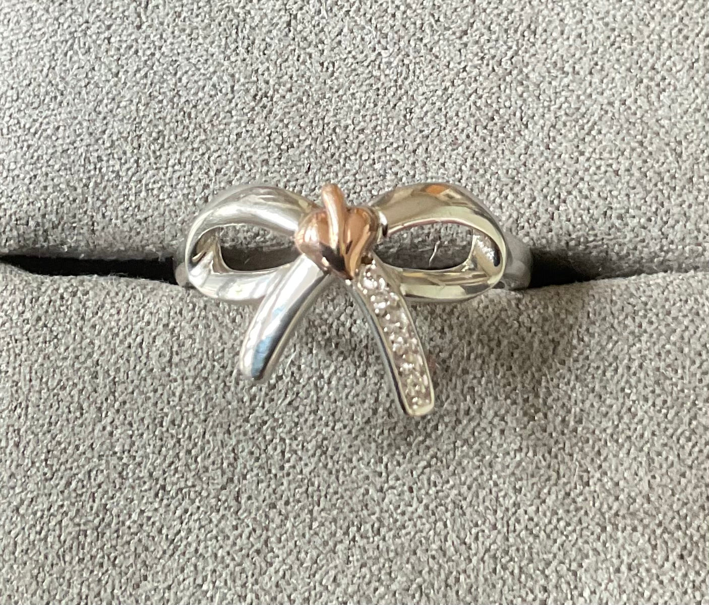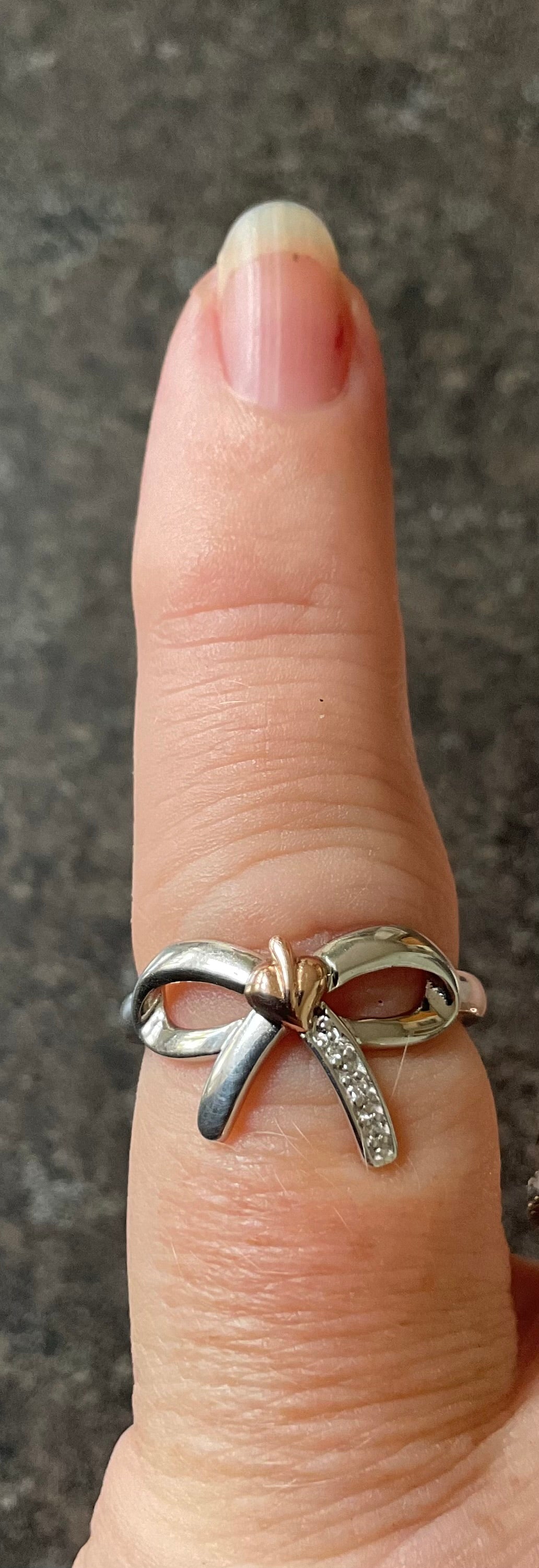 Clogau Tree of Life Diamond Bow ring size L silver & rose gold 2.34g