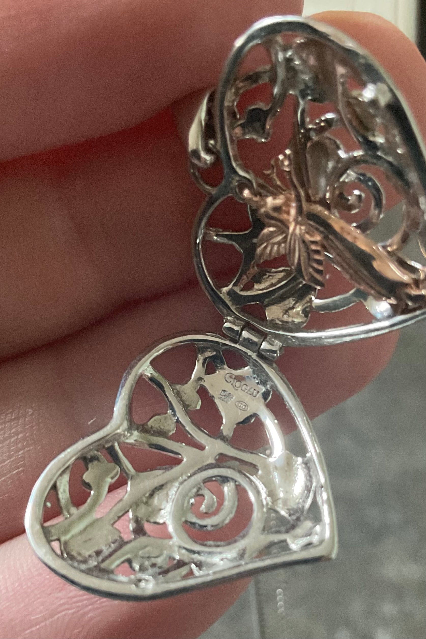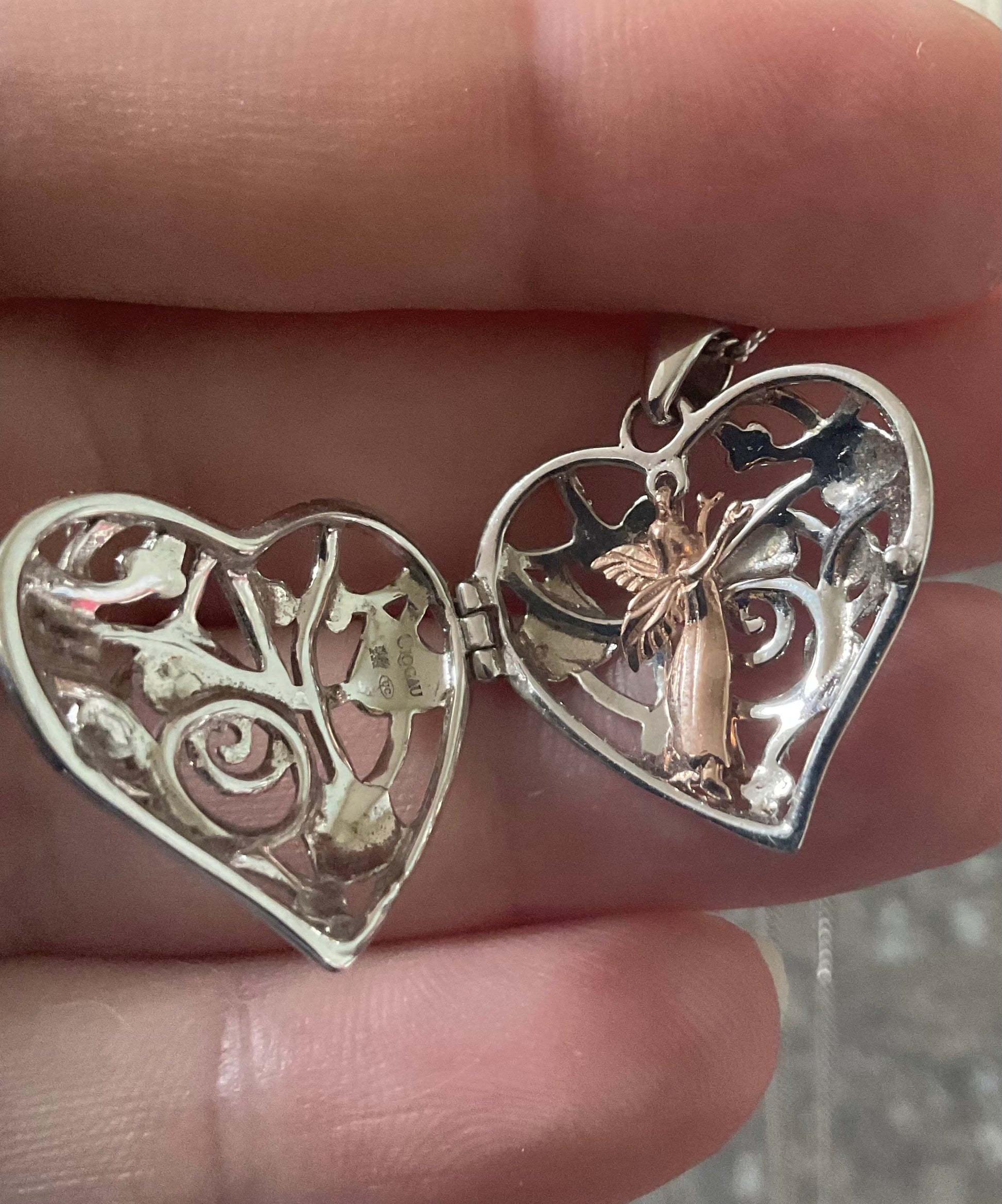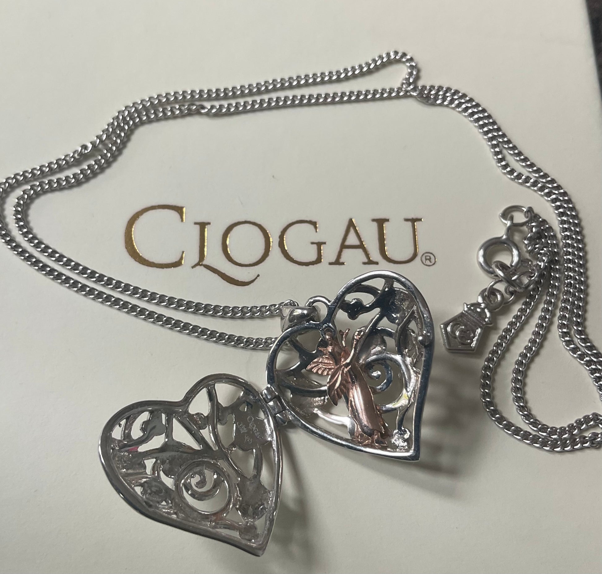 Clogau Tree of Life Fairy Heart Locket necklace in silver and rose gold 18”