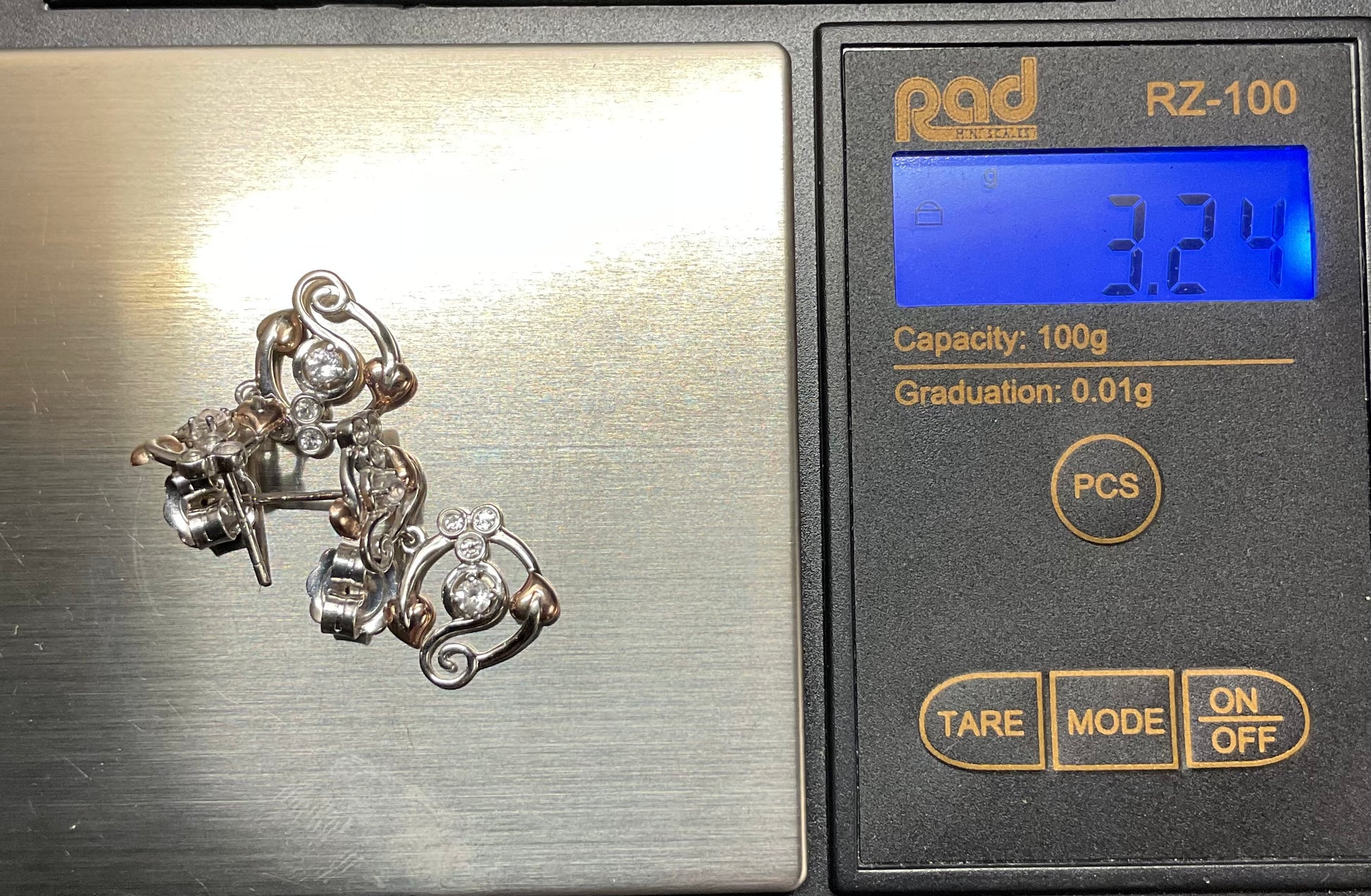 These gorgeous Clogau earrings are not seen very often in the drop design. They feature a Tree of Life Origins stud section made up of the silver and rose gold vines and leaves interspersed with sparkling, round cut white topaz stones but dangling below is another slightly larger section, that is exactly the same design. The earrings measure 2.5 cm in length and 1.4cm across at the widest point. The backs of the earrings and the butterfly backs have the Clogau stamps and the posts have the silver hallmarks. They are preowned but are in lovely condition with small signs of wear. The posts are not 100% straight but you won’t notice this when wearing them. They will come in Clogau packaging.