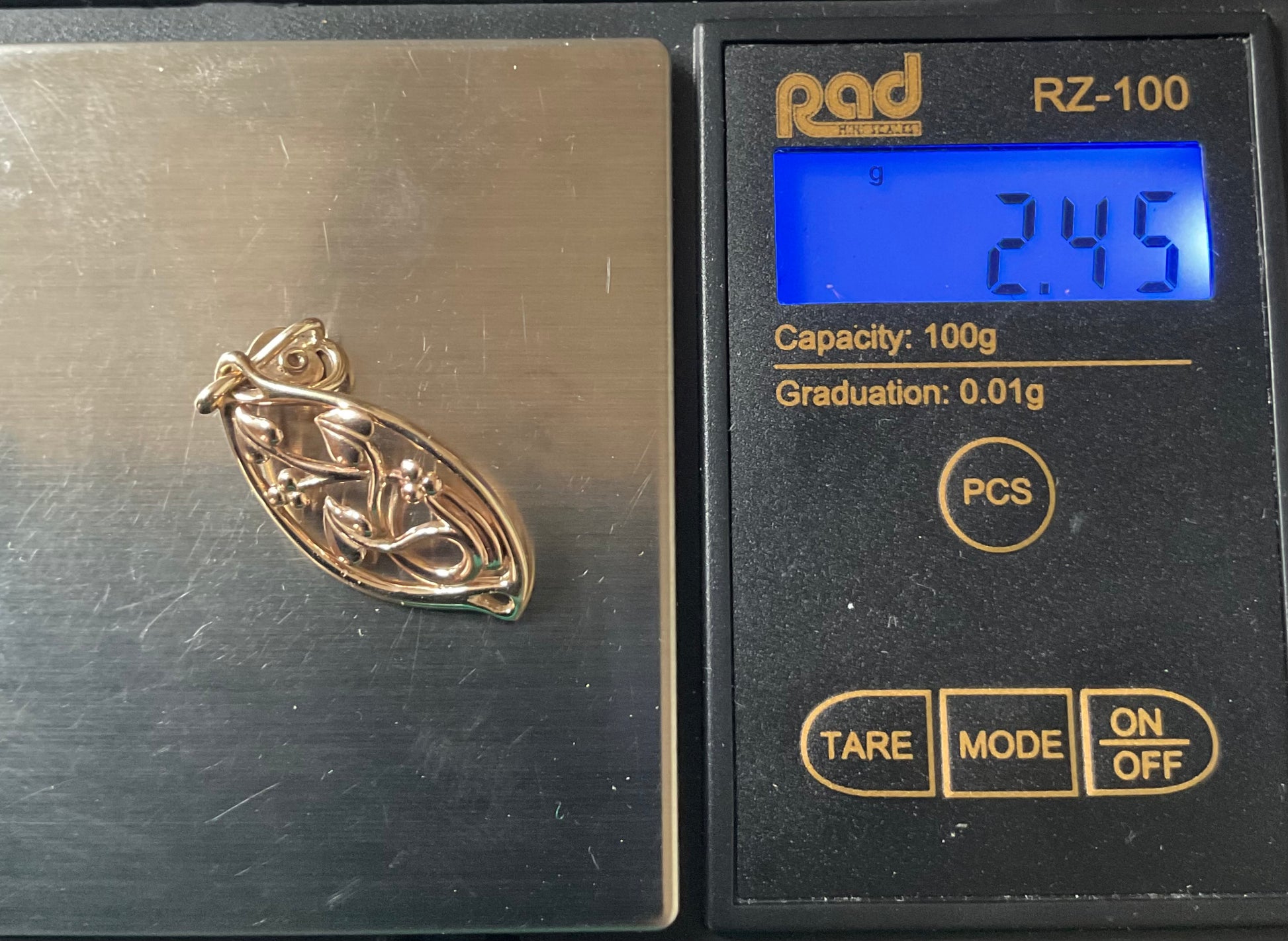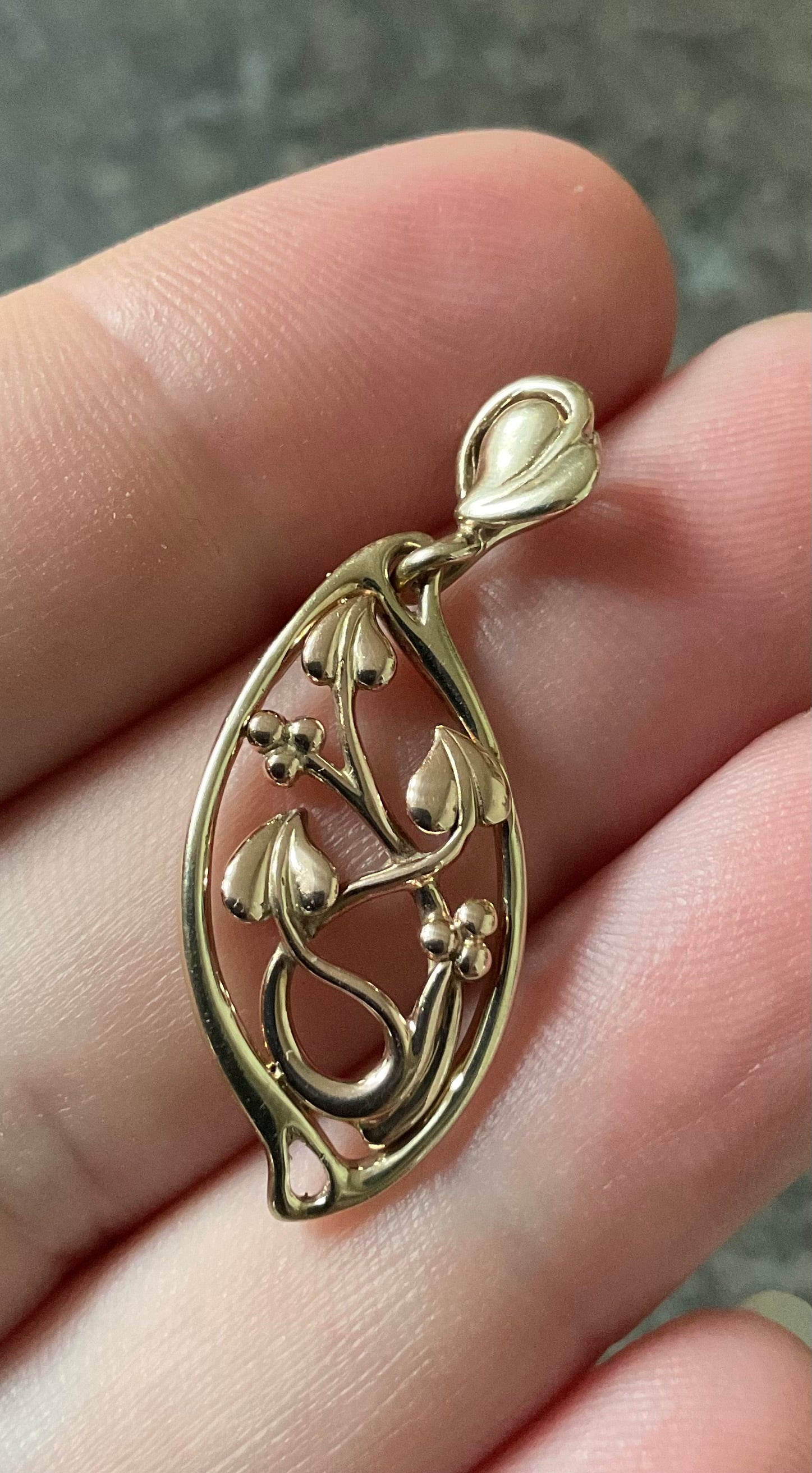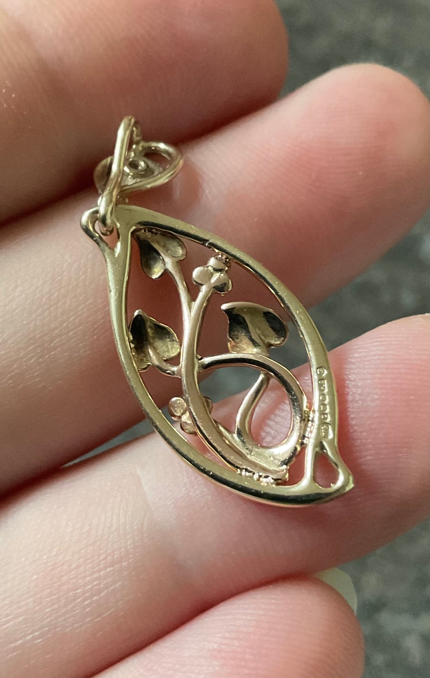 This is a beautiful vintage pendant stamped with the Sheffield 9ct gold hallmark. The bale and border are yellow gold and the lovely Tree of Life pattern is rose gold. It measures 3.5cm in length and 1.3cm wide and weighs 2.45g. It’s preloved so has small signs of wear but is in good condition for a vintage piece. There is no chain, this is for the pendant only. It will come in Clogau packaging.