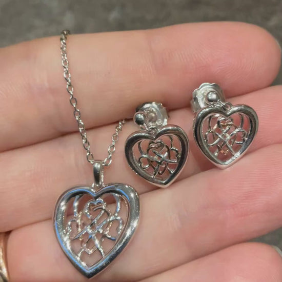 Clogau Welsh Royalty Heart pendant necklace and earrings set in silver and rose gold