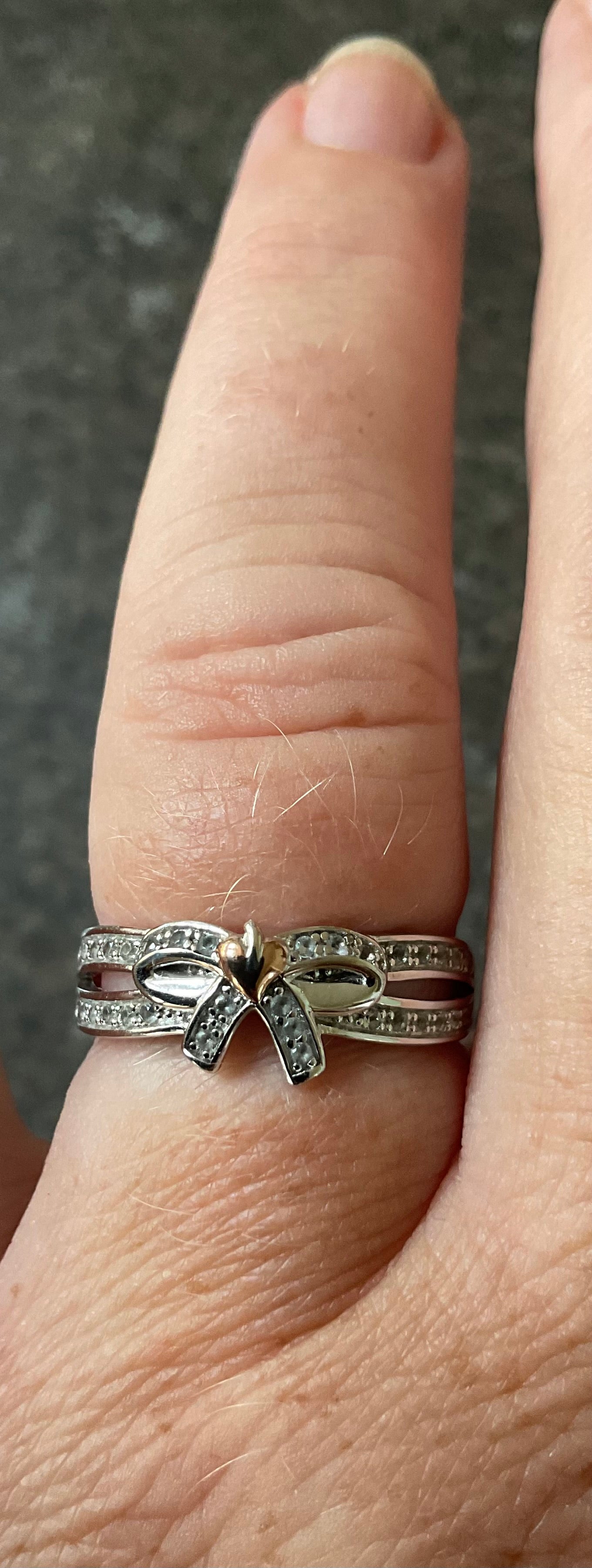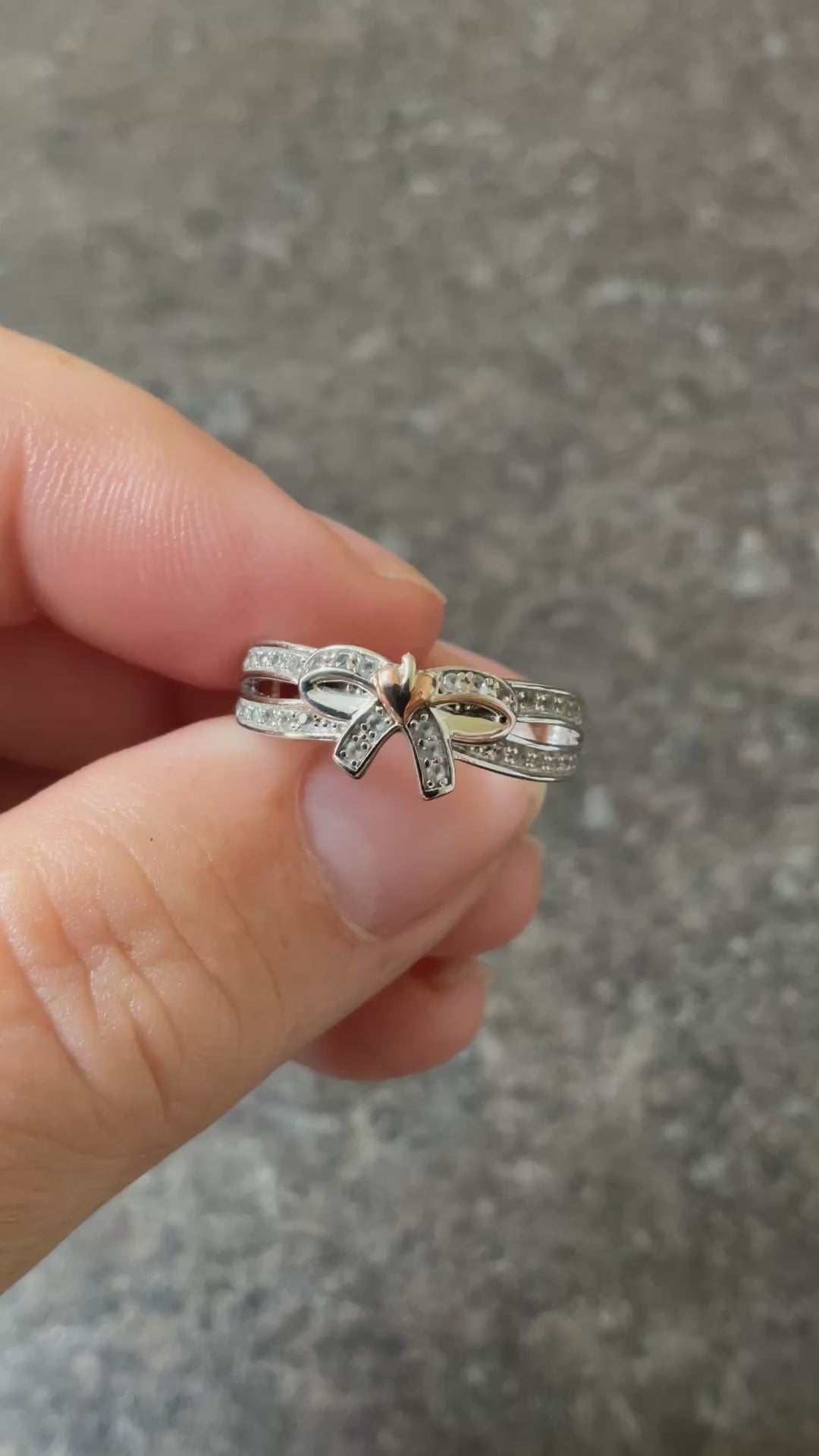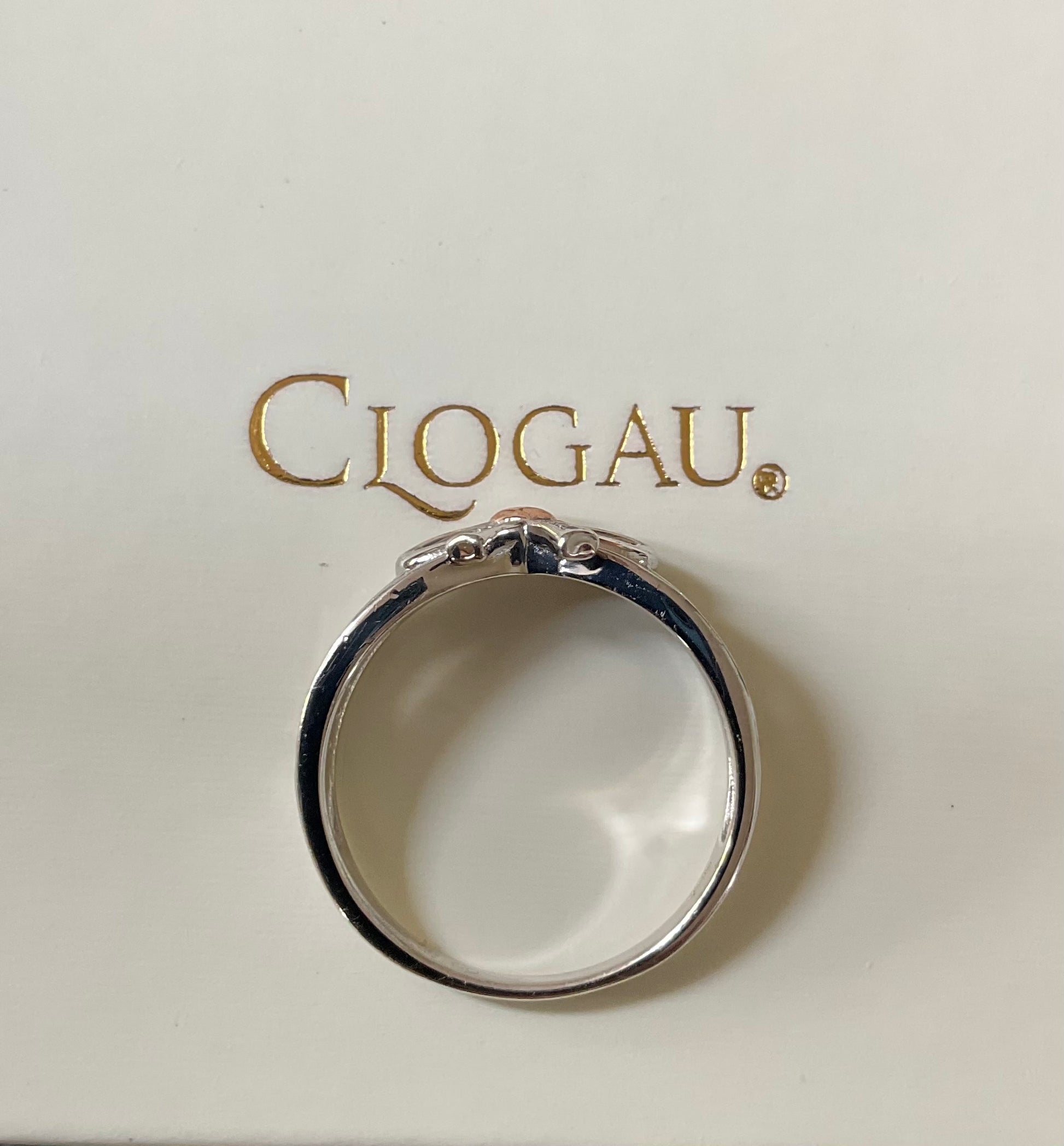 Clogau White Topaz Tree of Life Bow ring size P silver and rose gold