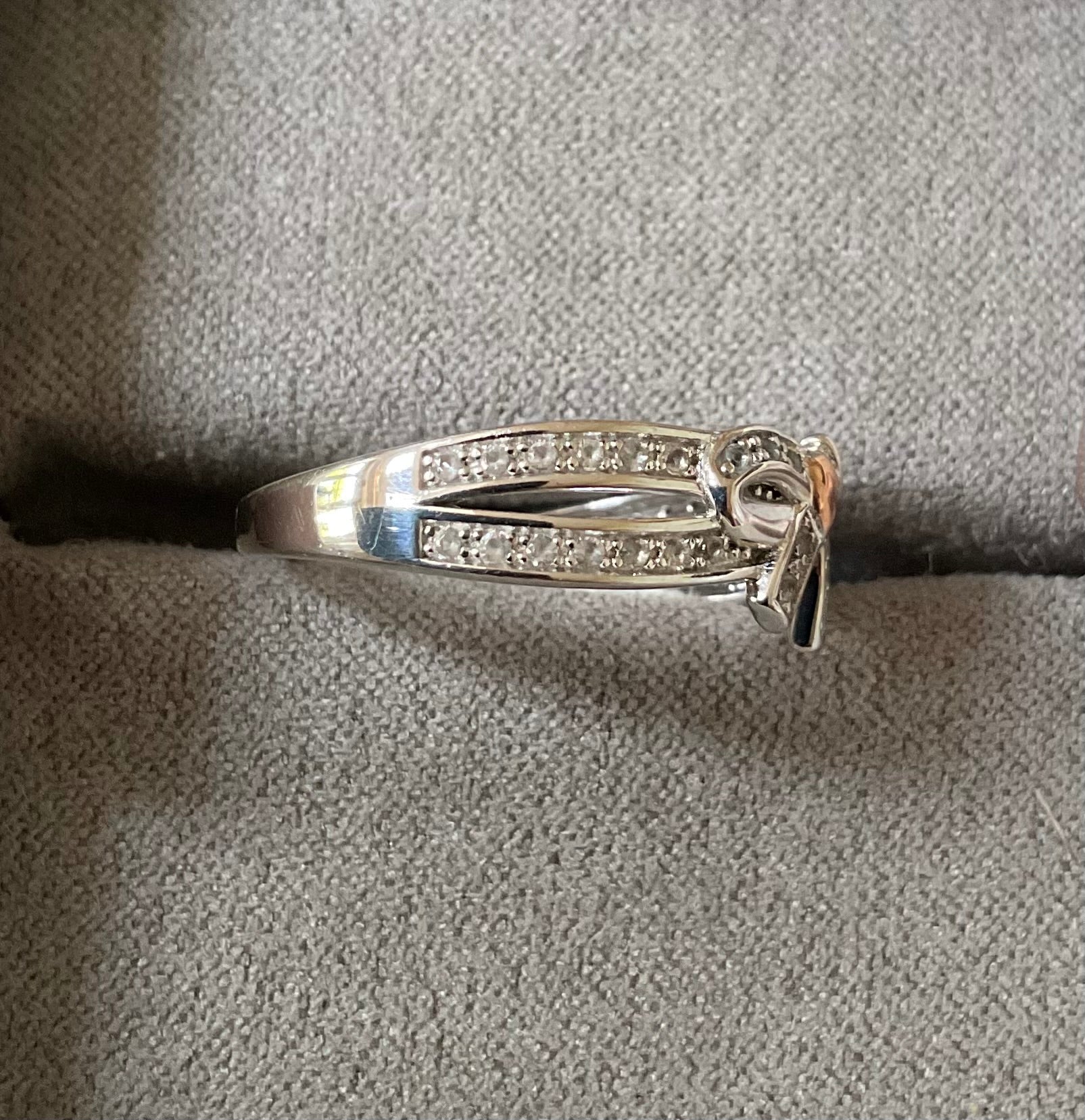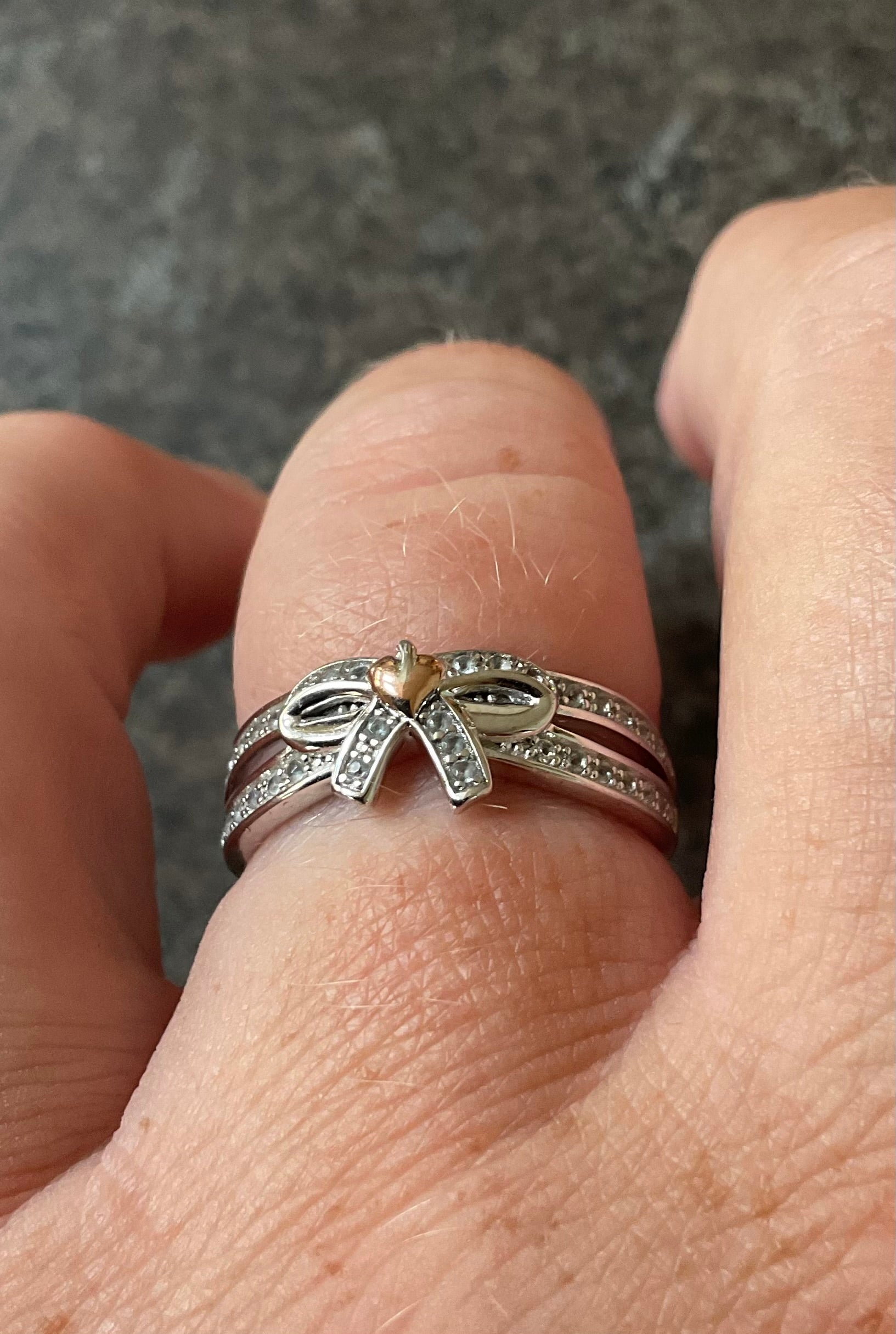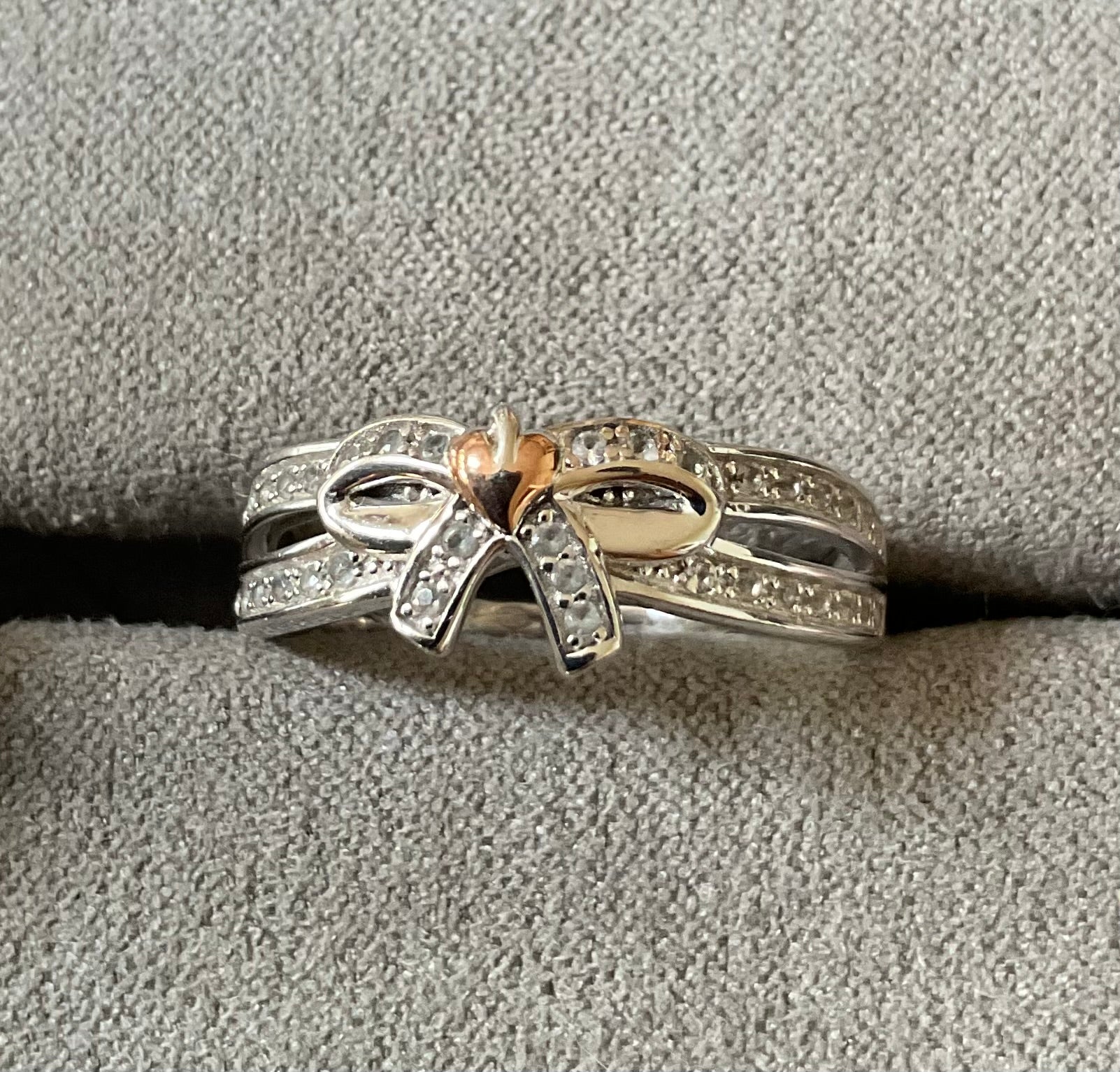 Clogau White Topaz Tree of Life Bow ring size P silver and rose gold