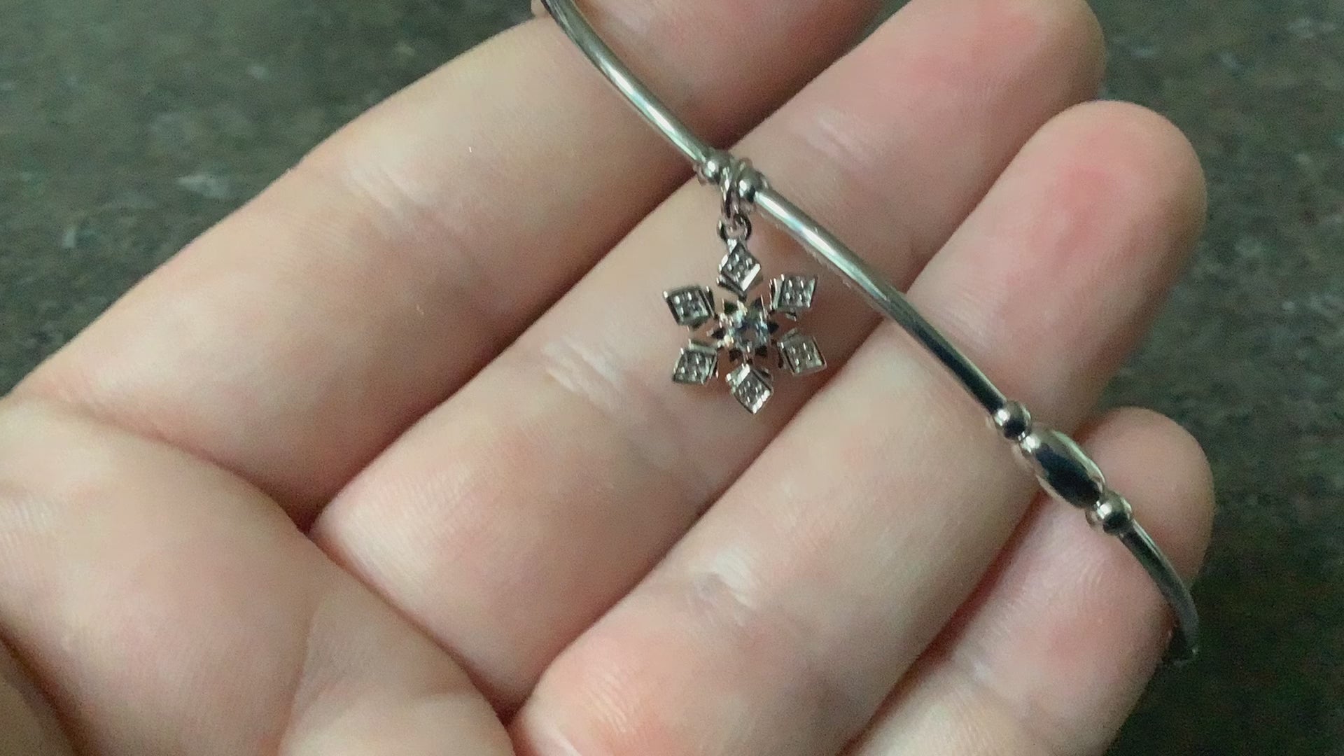 This is a beautiful bracelet that only been taken out of the box to take photos, so it’s in perfect condition. It comes in its new box with a Clogau cleaning cloth. The Snowflake charm measures 1.5cm long by 1.2cm wide. I have tried measuring the circumference and I think it’s about 19-19.5cm.