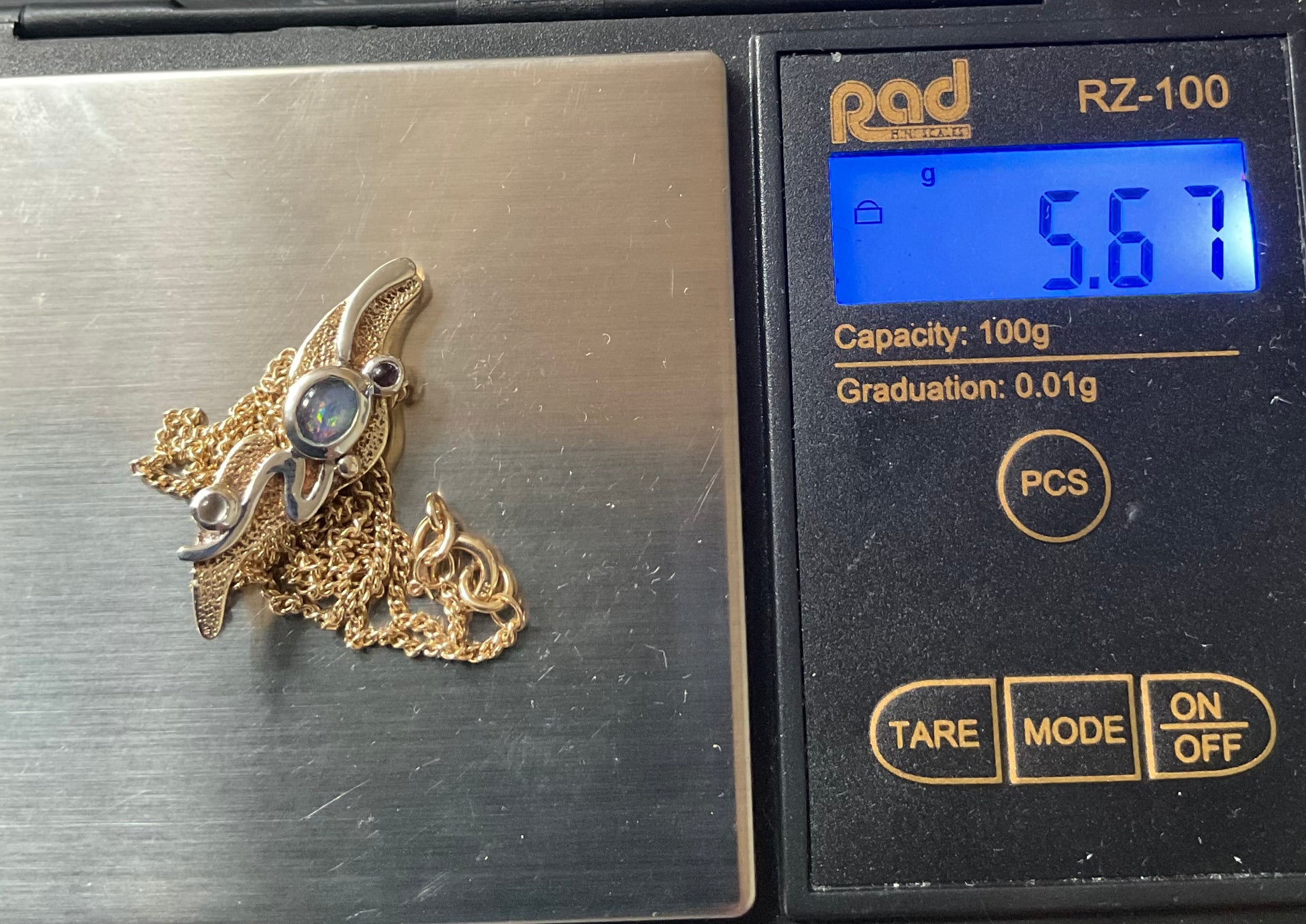 Rare Clogau 9ct Monet Waterlilies pendant necklace 18” Opal Amethyst and Moonstone cabochons yellow and white gold
