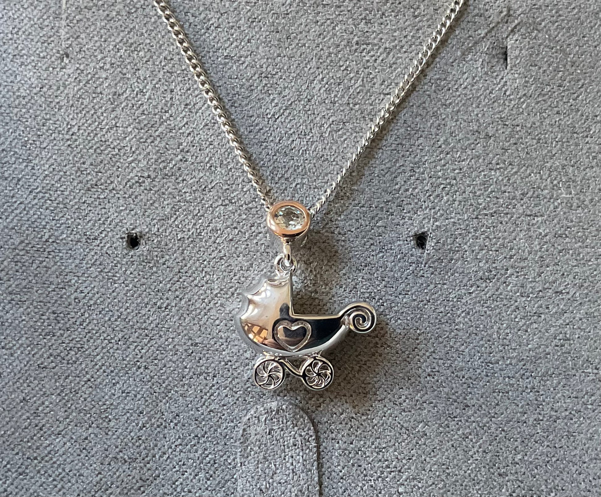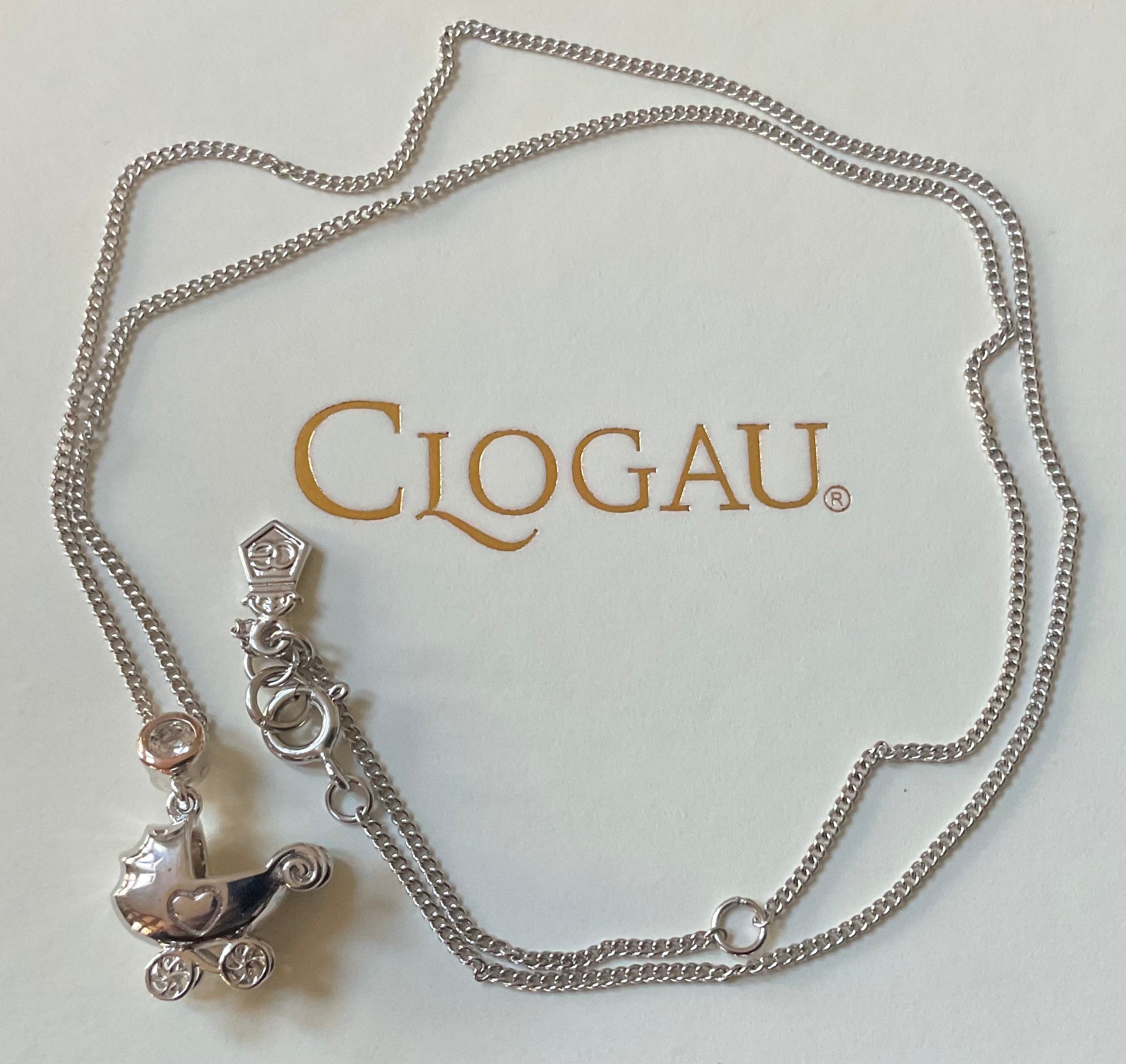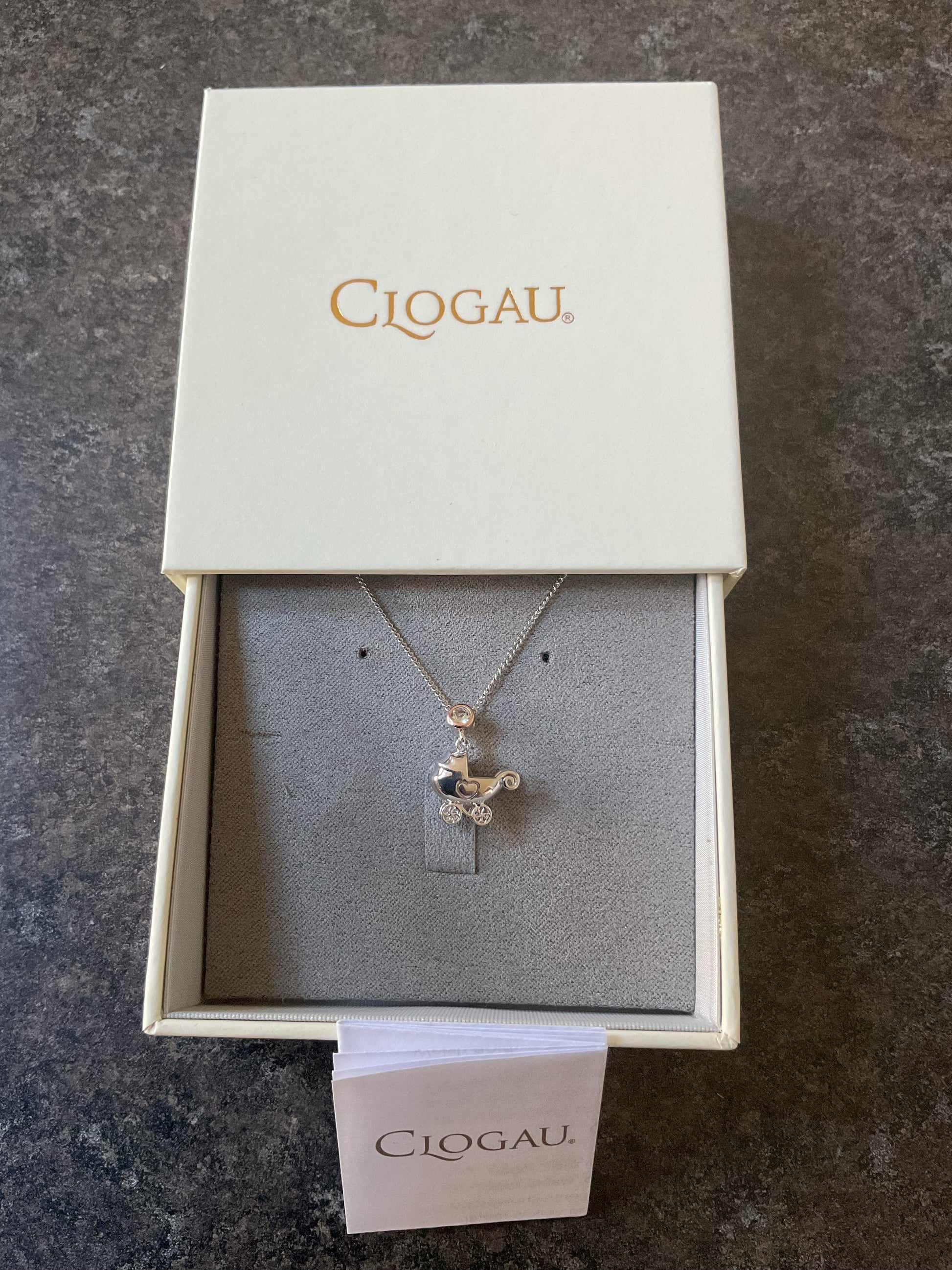 Rare Clogau Carriage Pram necklace topaz silver and rose gold 16-18”
